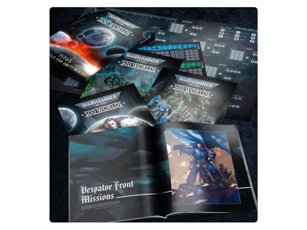 – 500 Worlds: Titus – War on the Vespator Front – A 56-page softcover book offering a narrative campaign of the over-arching conflict, giving every gamer a chance to stake their claim, along with six new missions to try.