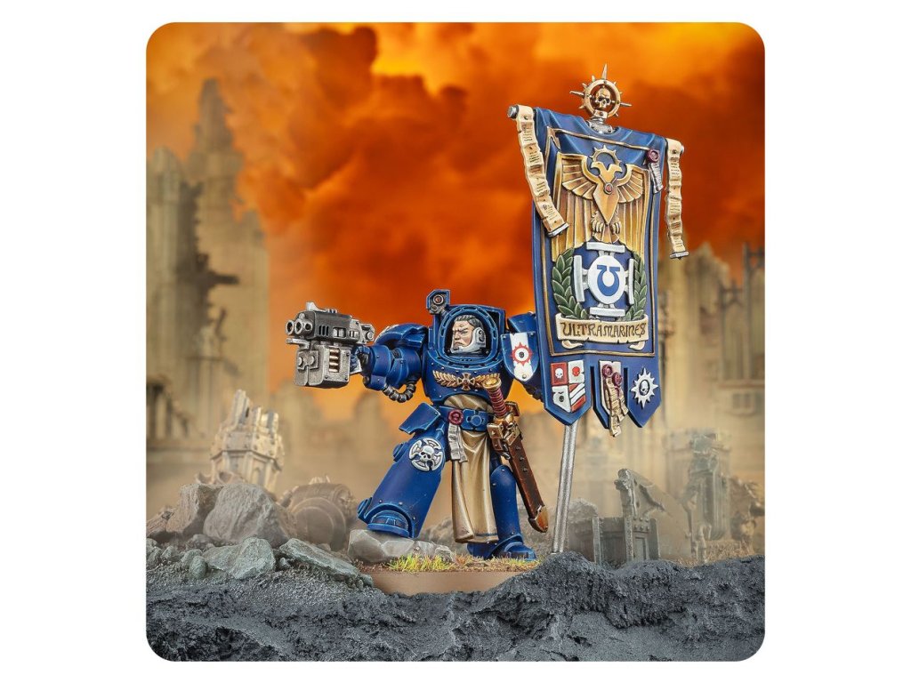 Ancients in Terminator Armour are tasked with carrying the sacred banners of the Space Marines – a vital task. Symbols of the Chapter’s might, Space Marines will gladly die to preserve them. This makes Ancients attractive targets for the enemy. When clad in mighty Terminator armour, they are near impervious to enemy fire, ensuring the standard always flies proudly.