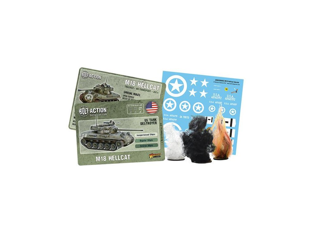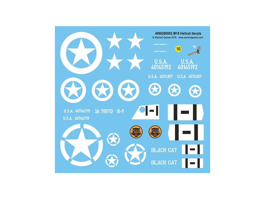 Standardní četa stíhačů tanků v roce 1944 se skládala ze 4 M18 s podporou 2 průzkumných užitkových vozidel M20, rozdělených do dvou protitankových sekcí. Tato sada obsahuje 2 plastové M18 Hellcaty a 1 plastové užitkové vozidlo M20 (které lze také přestavět na M8 Greyhound, pokud si to přejete).