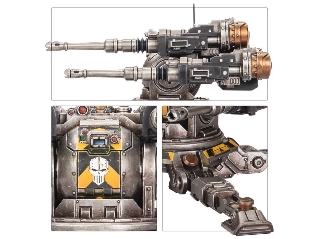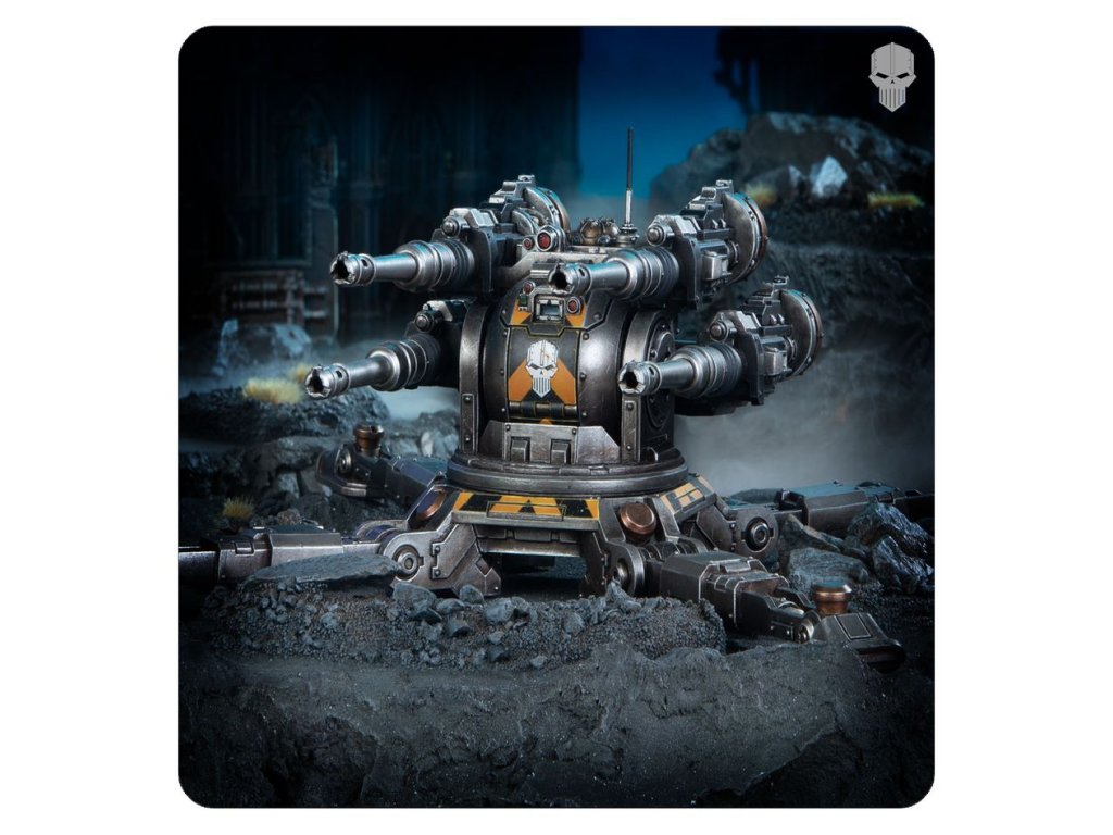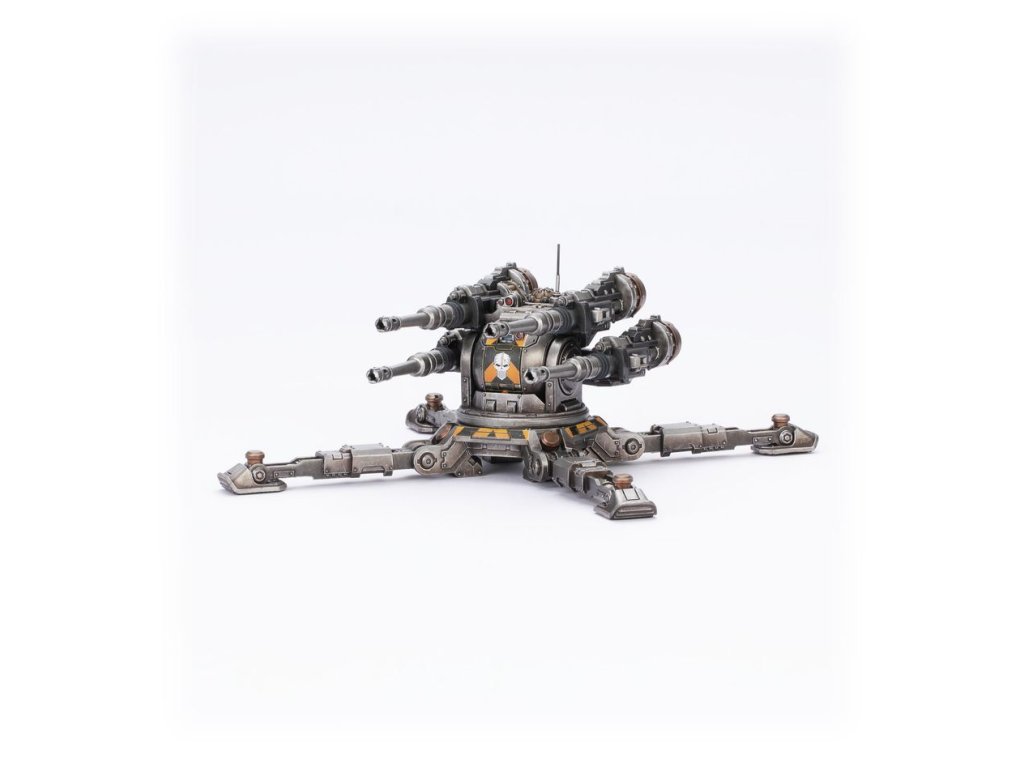 The Araknae Quad Accelerator Platform is a forward-deployed gun emplacement used by the Legiones Astartes. Once set up, their autocannon arrays excel at holding back the advance of the enemy and allowing other Legionary assets to establish positions deep in the heart of contested territory.