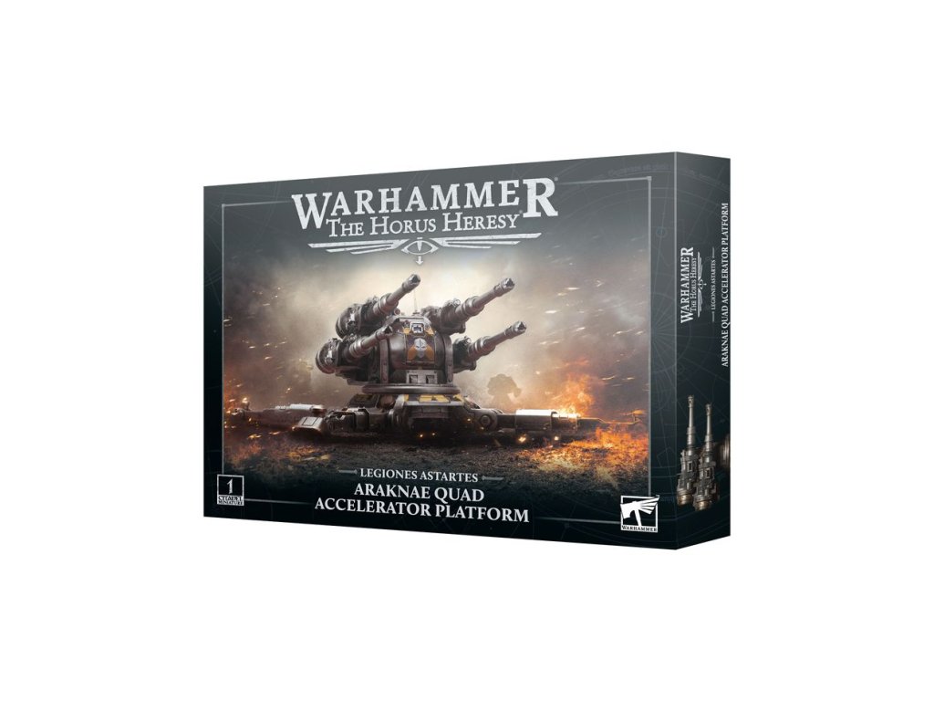 Tato vícedílná plastová stavebnice umožňuje postavit jednu Araknae Quad Accelerator Platform, těžké dělostřelecké stanoviště pro vaše armády Legiones Astartes ve hrách Warhammer: The Horus Heresy. Díky čtyřem akceleračním automatickým kanónům toto stanoviště dodává děsivý náklad, který dokáže rozdrtit i těžkou pěchotu a ulehčit si práci s obrněnými transportéry a válečnými stroji. Energetické stínění, které je v něm zabudováno, také poskytuje krytí nejen pro sebe, ale i pro blízké jednotky, takže je ideální pro držení důležitých pozic.