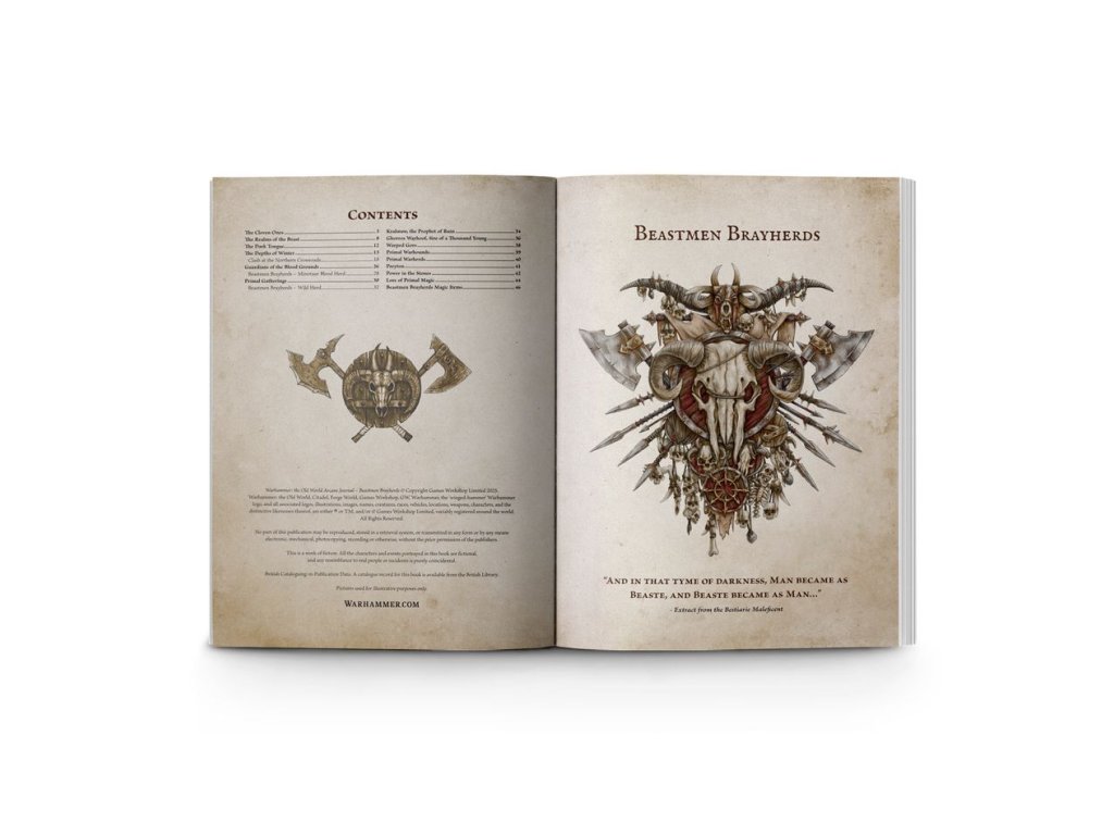 – Beastmen Brayherds Magic Items: Provides the rules for Magic Weapons, Magic Armour, Talismans, Magic Standards, Enchanted Items, and Arcane Items.
