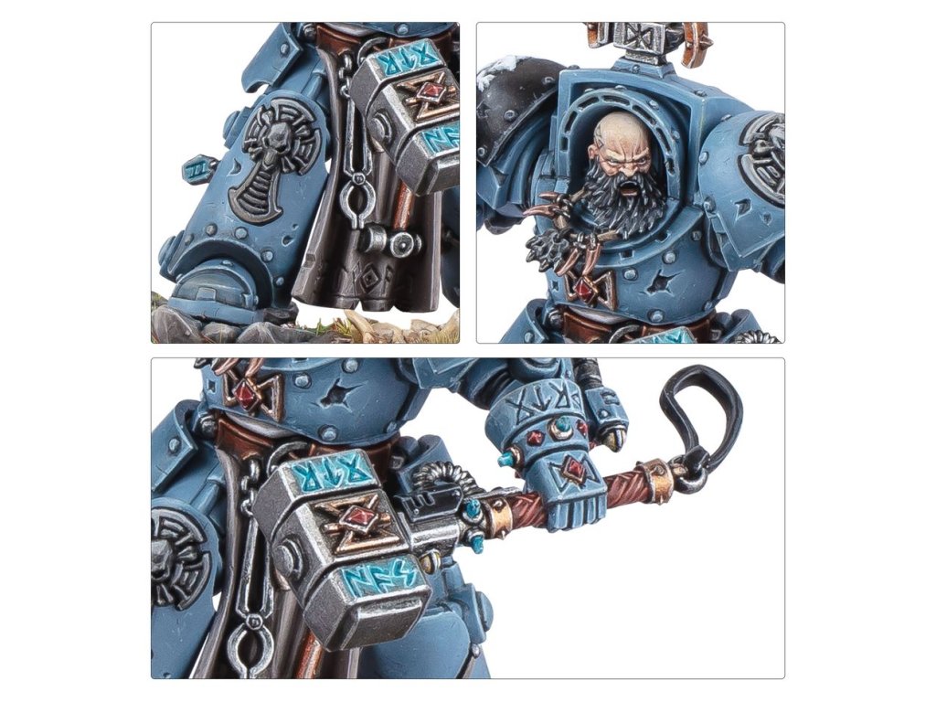 Arjac Rockfist is a towering mass of muscle and a taciturn anvil of endurance. Wielding the enormous Foehammer, he crushes his foes with pulverising strength. As the personal champion of the Great Wolf, Arjac upholds the honour of the Chapter.