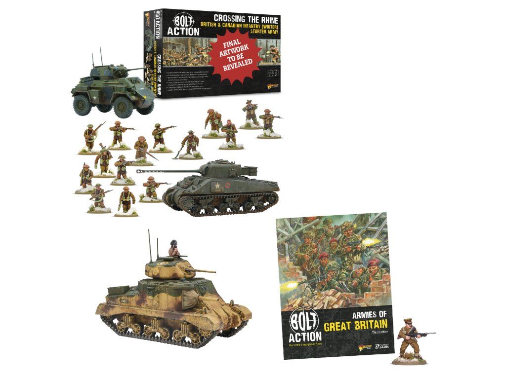 Pusťte se do toho naplno s touto kolekcí, která vás vybaví vším, co vychází spolu s hrou Armády Velké Británie: Třetí edice! Získejte nové Armády Velké Británie, startovací armádu „Překročení Rýna“ a tank M3 Grant jedním kliknutím.