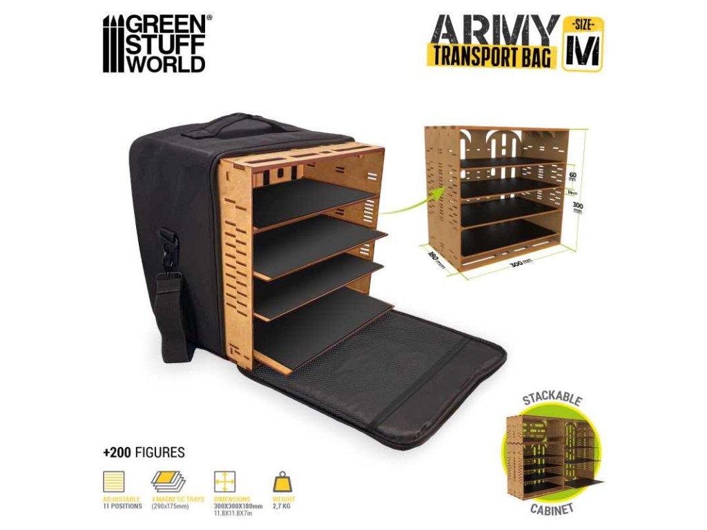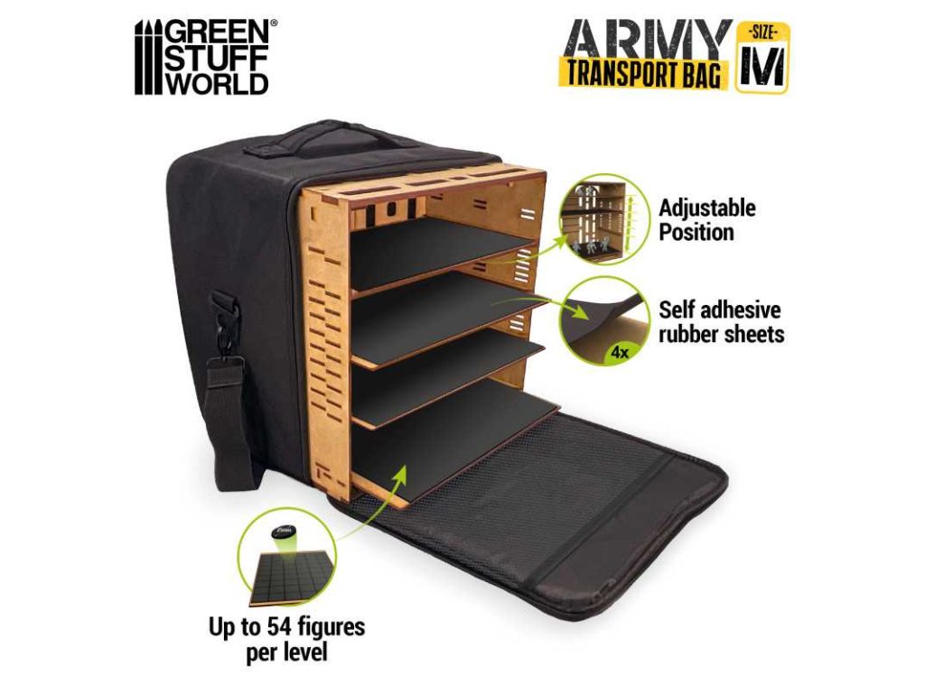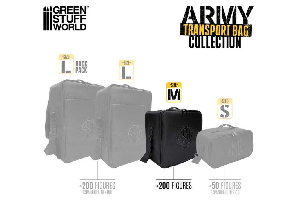 Přepravní taška na miniatury Army Transport Bag byla speciálně navržena pro ochranu vašich armád během přepravy. Je vyrobena z lehké, odolné a polstrované oxfordské tkaniny pro dlouhou životnost a umožní vám bezpečně a spolehlivě přenášet více než 200 miniatur, rozložených do 4 úrovní.