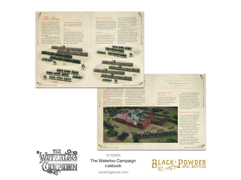 Hra Black Powder Epic Battles, založená na oceňovaném systému pravidel pro Black Powder, vám umožňuje zopakovat klíčové bitvy kampaně u Waterloo ve velkém měřítku s dobovými doplňky, které zachycují taktiku, podmínky a významné osobnosti napoleonských válek.