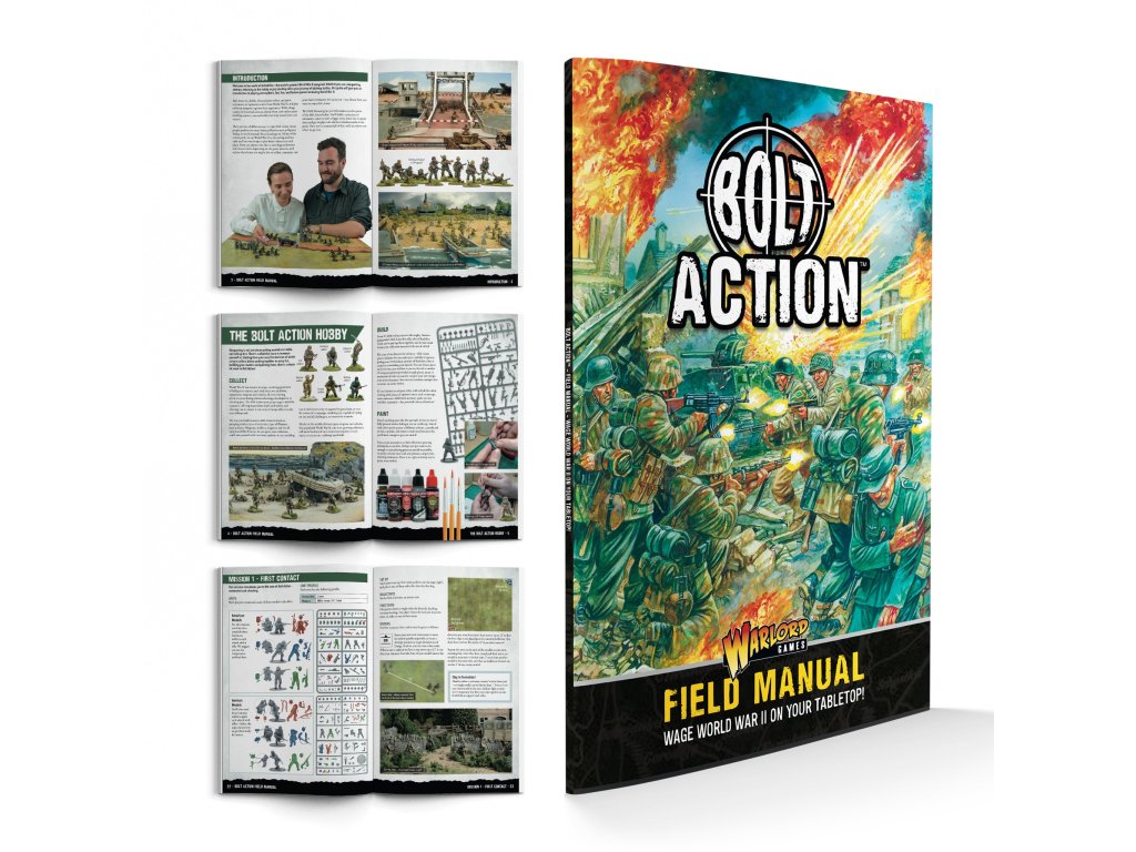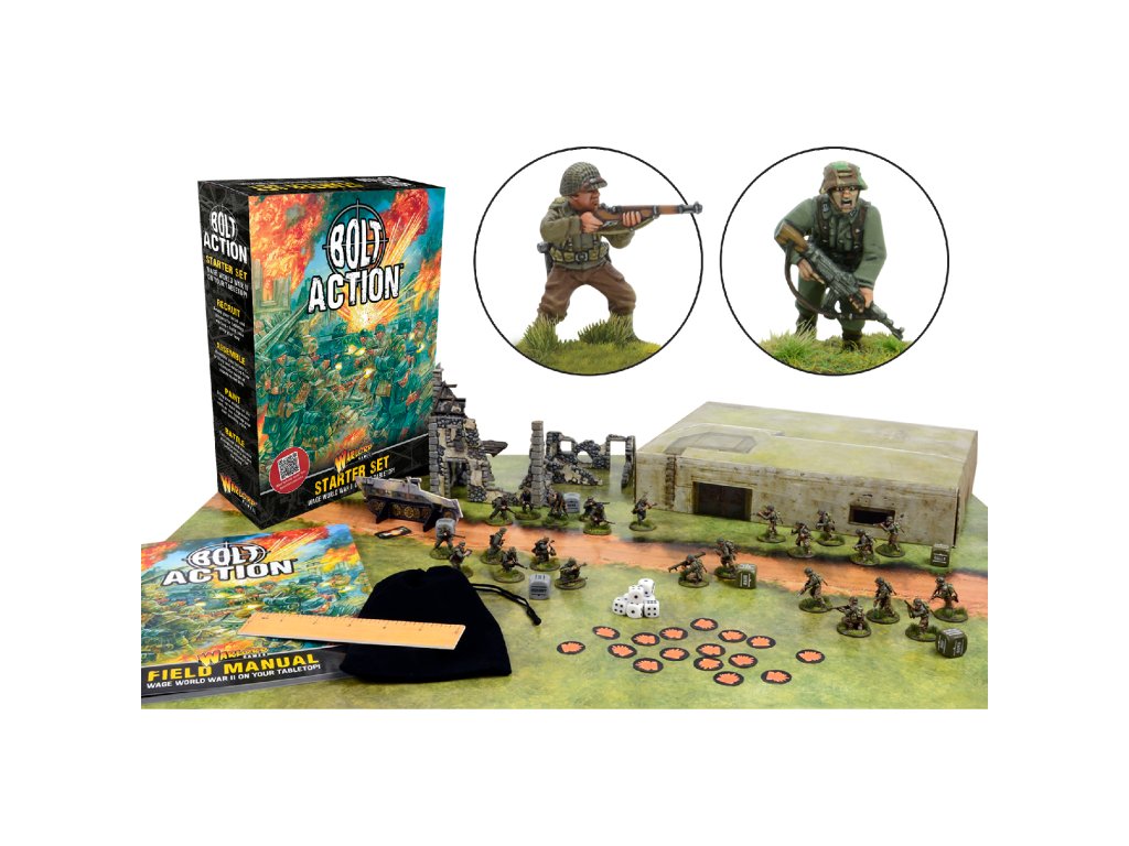 Startovací sada Bolt Action vás provede prvními kroky ve světě stolních válečných her a vítá vás ve světě Bolt Action, ultimátní válečné hry z druhé světové války! Je navržena speciálně pro představení základů tohoto koníčku v zábavných a jednoduchých krocích. Naučíte se, jak sestavit a namalovat své první modely, hrát své první hry a seznámit vás s širším světem Bolt Action.
