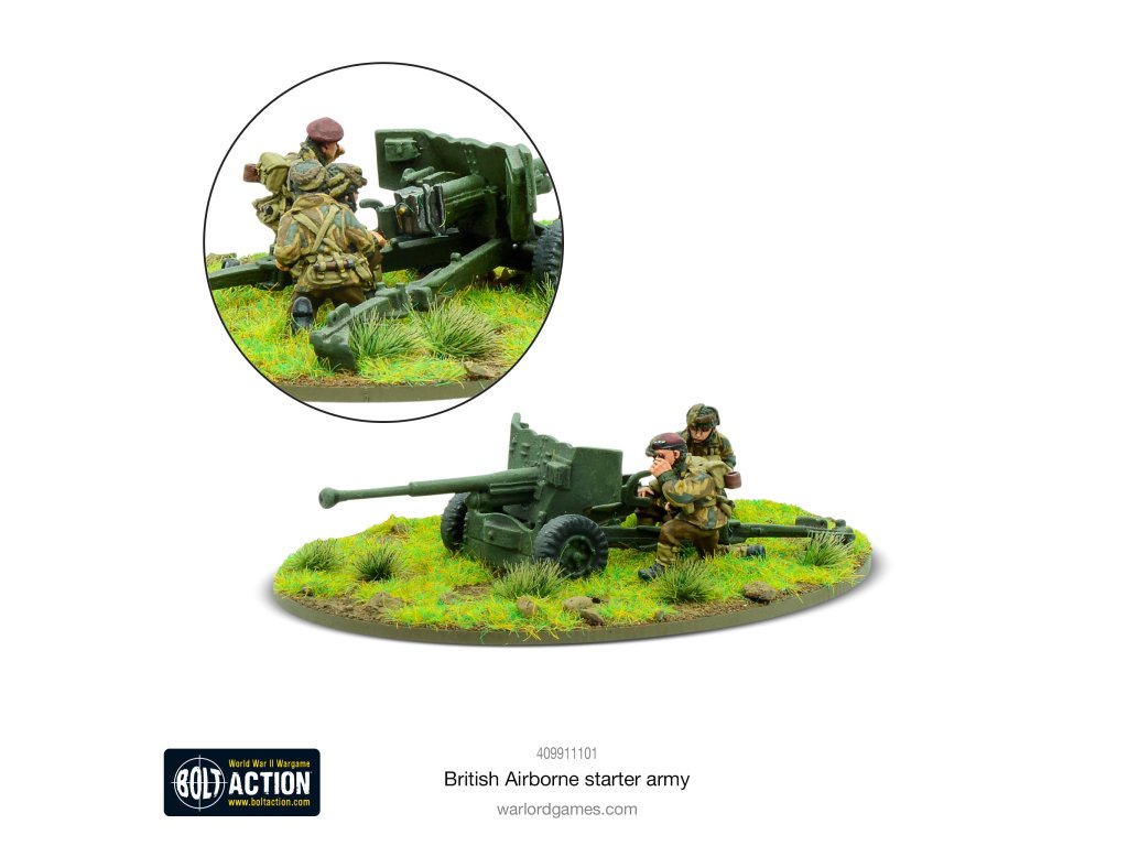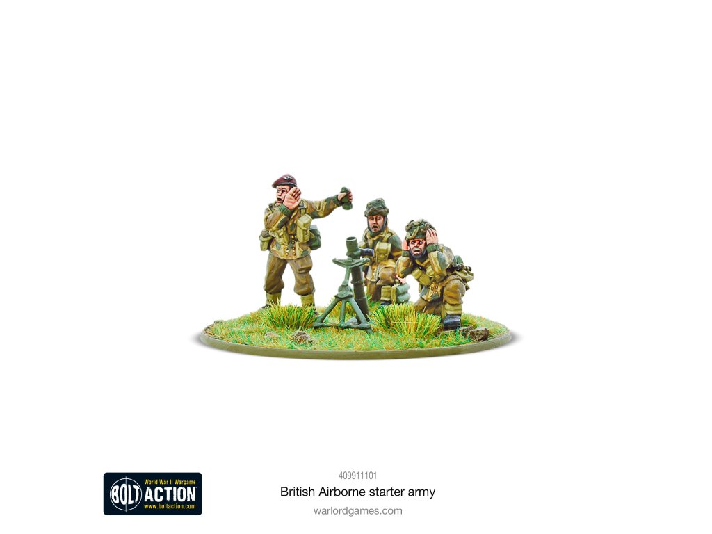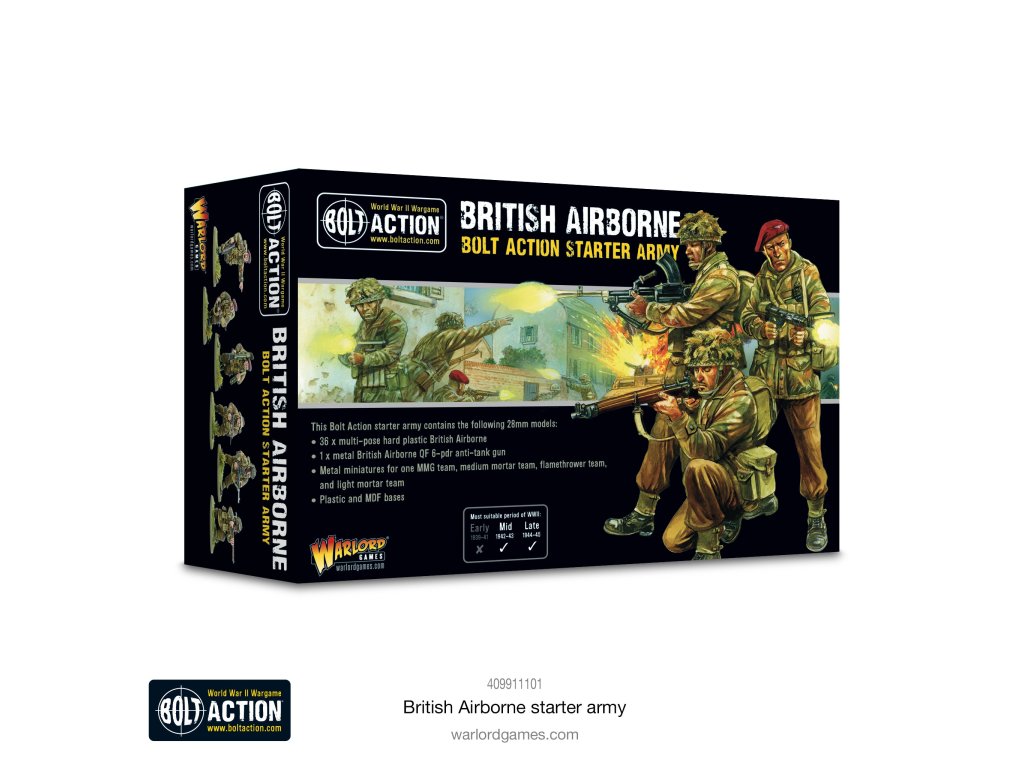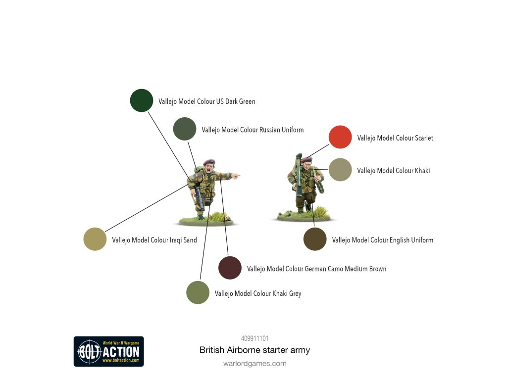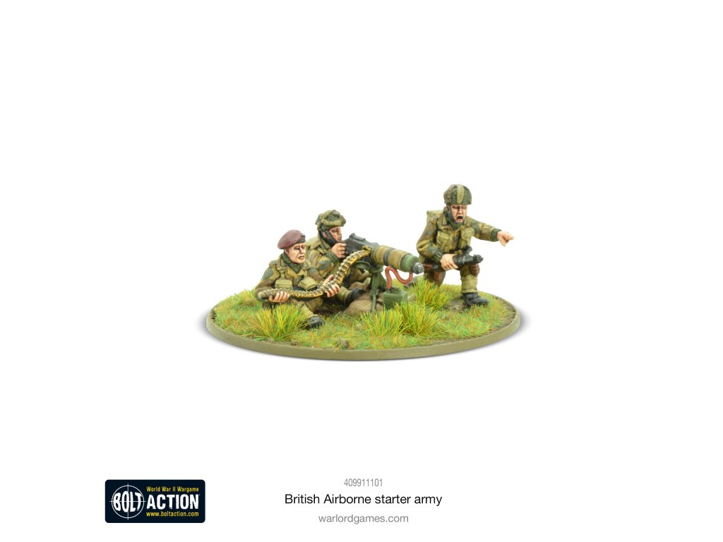 36 plastových pěšáků s výběrem zbraní, včetně lehkých kulometů, samopalů, samopalů PIAT, pušky s puškohledem pro odstřelovače a řadou vybavení pro velitele, jako jsou dalekohledy.