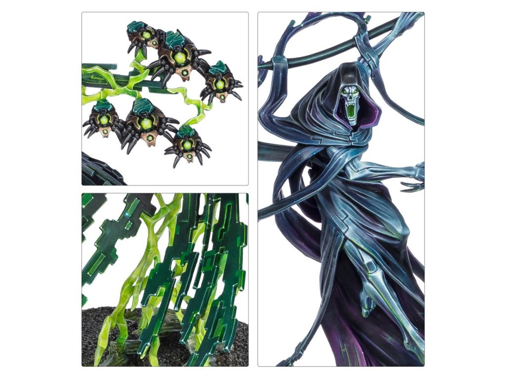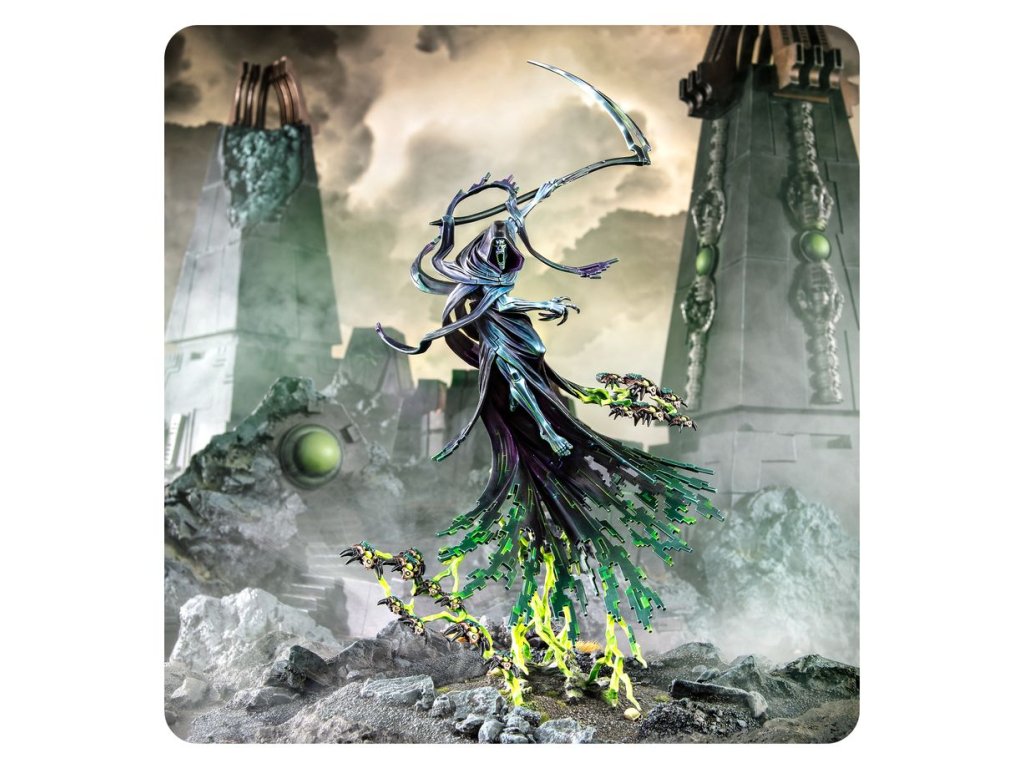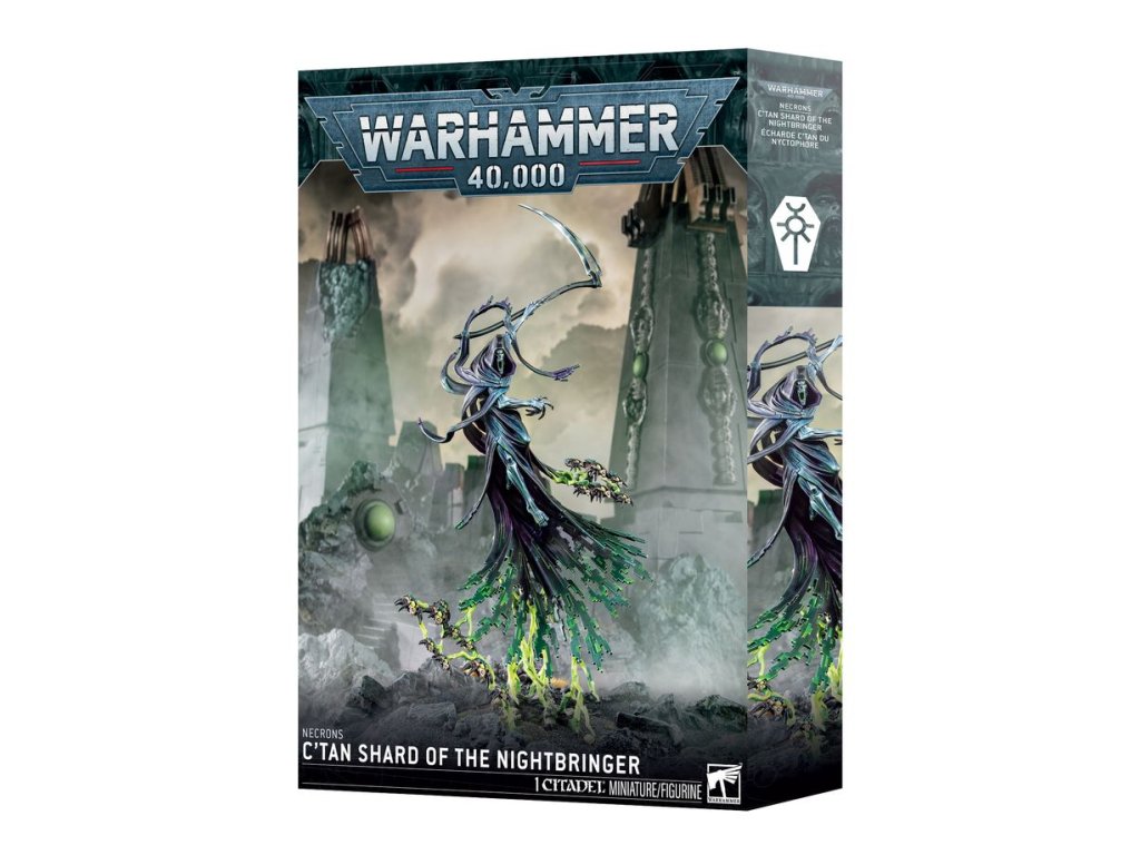 The Nightbringer was once death incarnate – a sadistic god with the power to unmake the stars and a hunger for the life of the galaxy. Like its fellow C’tan, it was shattered by the Necrons, and its insane fragments have ever since been enslaved by those it once ruled. A single shard of the Nightbringer can destroy entire armies. They extrude scythe‑shaped blades from their necrodermis, using them to cull their enemies with great sweeps of entropic unmaking. Their very gaze, meanwhile, is death itself, capable of leeching the essential animus from their victims.