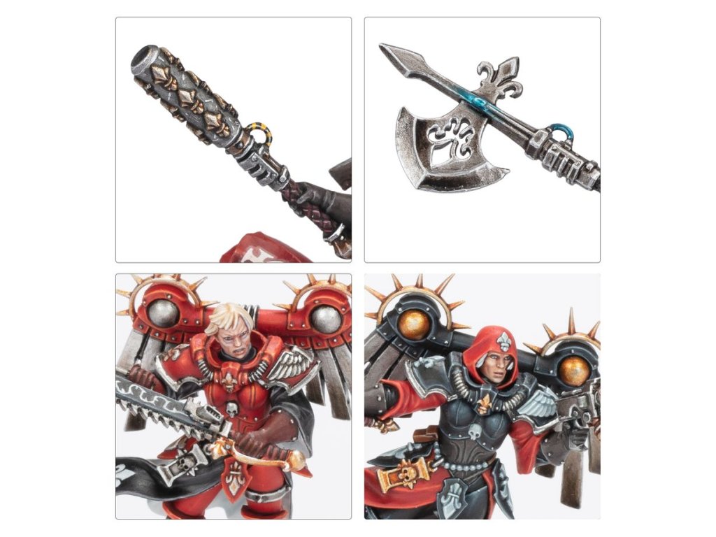 Many Canonesses of the Adepta Sororitas go to battle equipped with jump packs, using them to descend from the heavens and mete out the Emperor's justice. They are the greatest and most experienced warriors of their Orders, combining their strategic expertise with martial prowess.