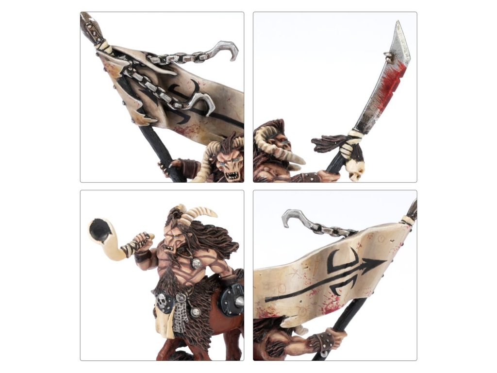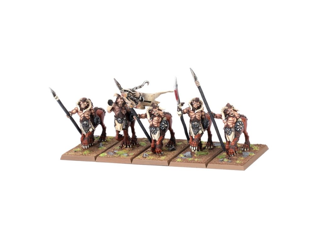 Centigors are powerful creatures, strong of limb and fleet of foot. In their harsh tribal lifestyle, there's little room for the weak and powerless and, like most beastmen, they are led by the meanest and toughest of their kind. When they gather in large numbers, the strongest among them will ride with them into battle, leading the charge.