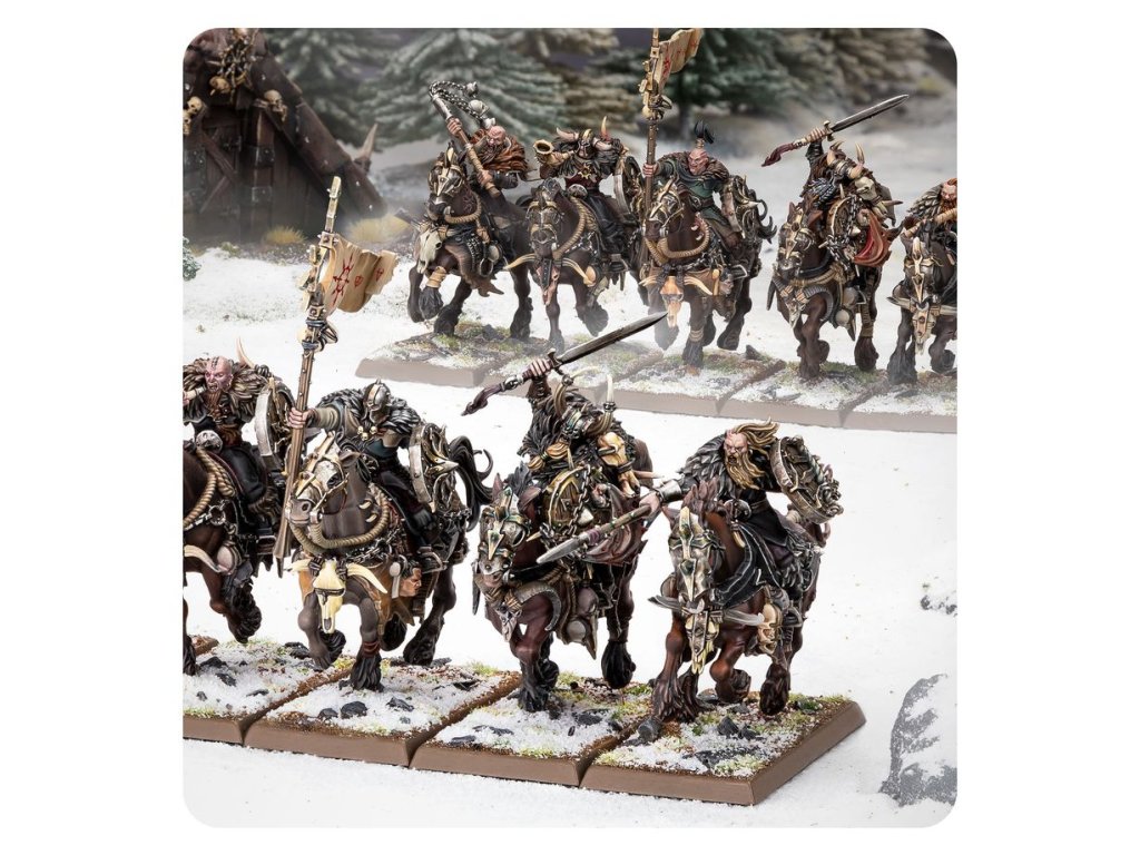 This multipart plastic kit builds ten Chaos Marauder Horsemen, savage mortal cavalry for your Warriors of Chaos armies in games of Warhammer: The Old World. These frenzied warriors hail from the frozen wastes of the north and are prepared to unleash cold fury on the enemies of their Dark Gods. If you're looking for an agile unit to harass the enemy and finish off weakened foes, the Marauder Horsemen are ideal.