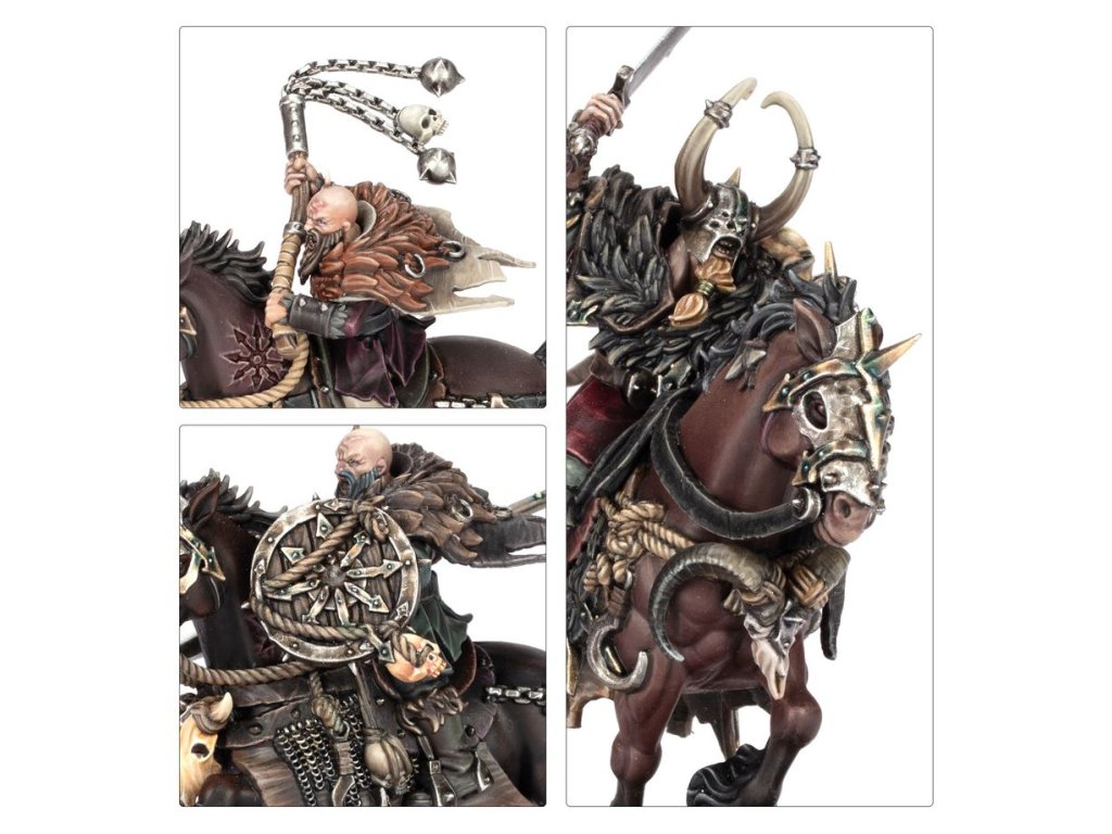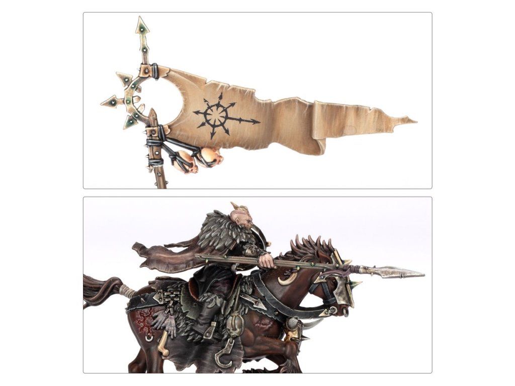 Marauder Horsemen ride powerful, foul-tempered beasts into battle. Once a rider has broken such a horse, it will remain loyal until death. Fed on a diet of human flesh and watered-down blood, these snorting, high-spirited steeds have a glint of intelligent menace in their eyes and will go berserk when engaged at close quarters.