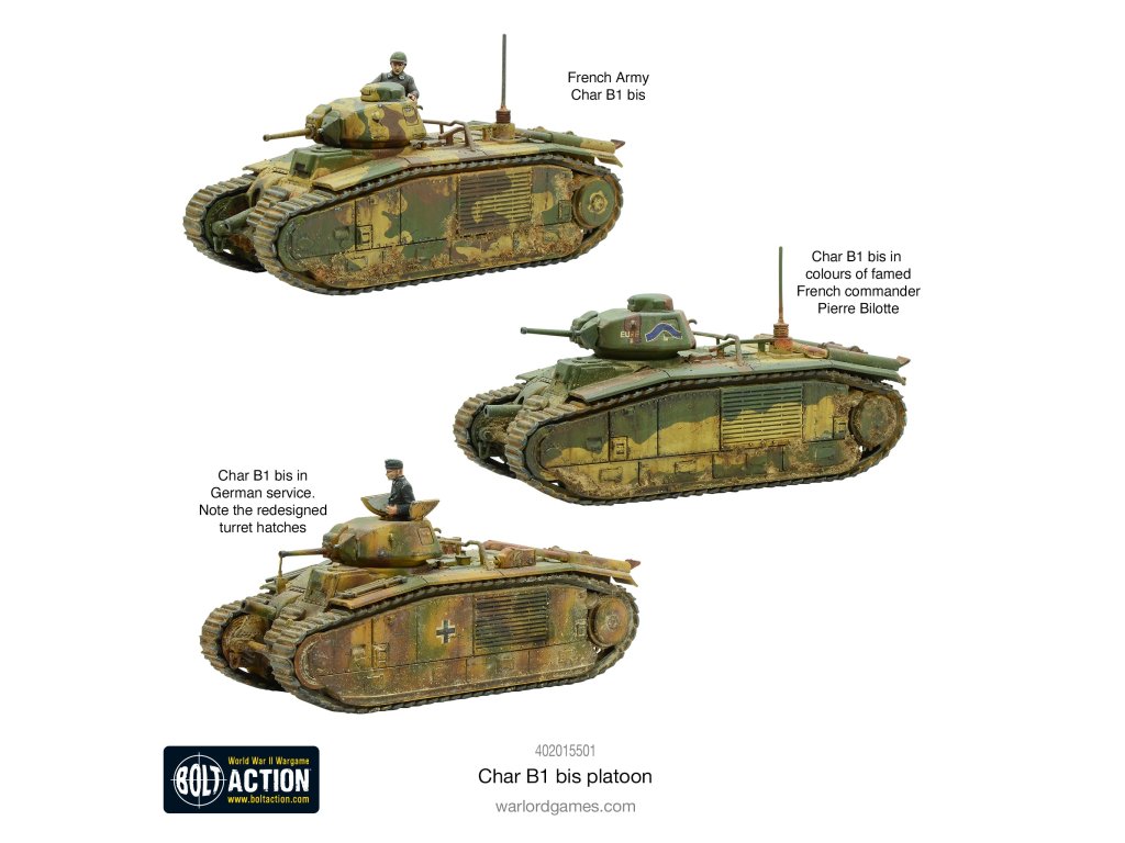 Vylepšený tank Char B1 měl Char B1 bis silnější pancéřování a věž APX4 s delší hlavní (L/32) 47mm kanónem SA 35, což mu poskytovalo větší protitankovou kapacitu vedle 75mm houfnice namontované na trupu. Francouzské zkušenosti z první světové války ovlivnily jejich přesvědčení, že v budoucích konfliktech bude potřeba průlomový tank, a proto vznikla konstrukce těžkých Char B1 a B1 bis. Char B1 bis, jeden z nejsilnějších tanků své doby, byl v roce 1940 během bitvy o Francii velmi účinný proti německým obrněným vozům. Nicméně pomalá rychlost a vysoká spotřeba paliva ho znemožnily přizpůsobit se plynulejšímu stylu boje, který se v té době vedl.