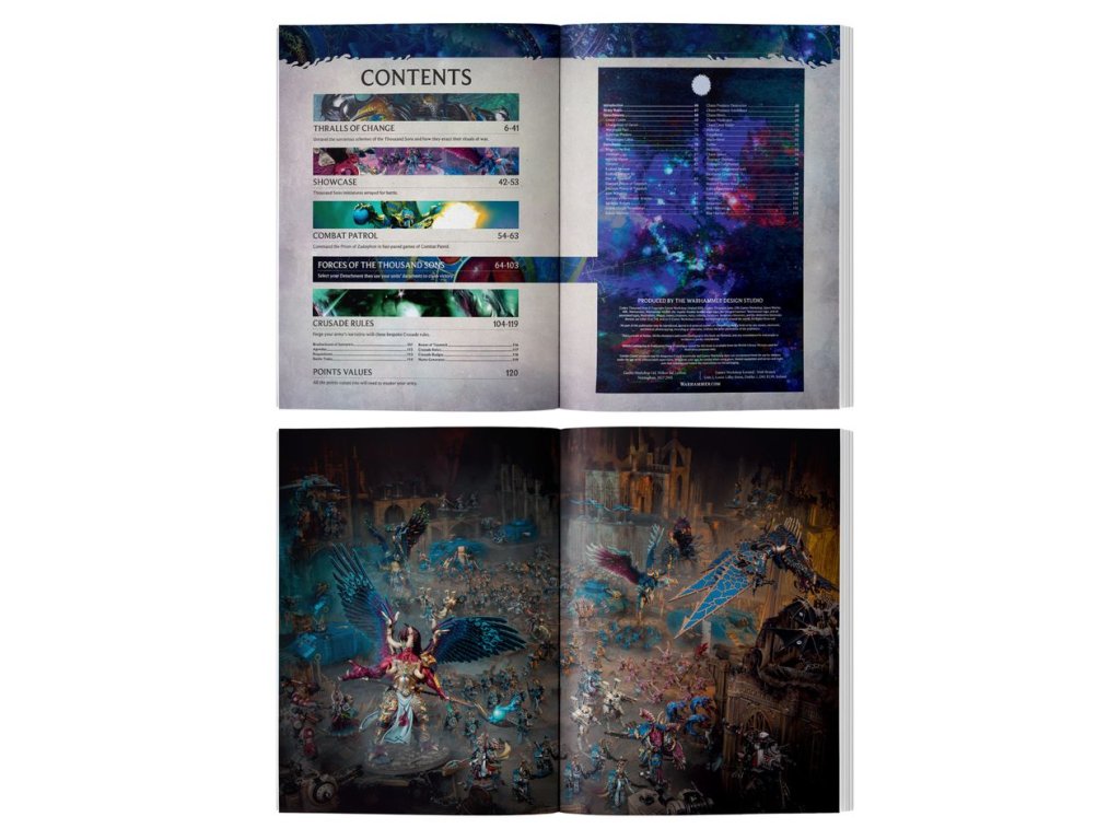 – Rules for using the Thousand Sons and Daemons of Tzeentch in games of Warhammer 40,000, with 34 datasheets, five Detachments, and two army-wide rules