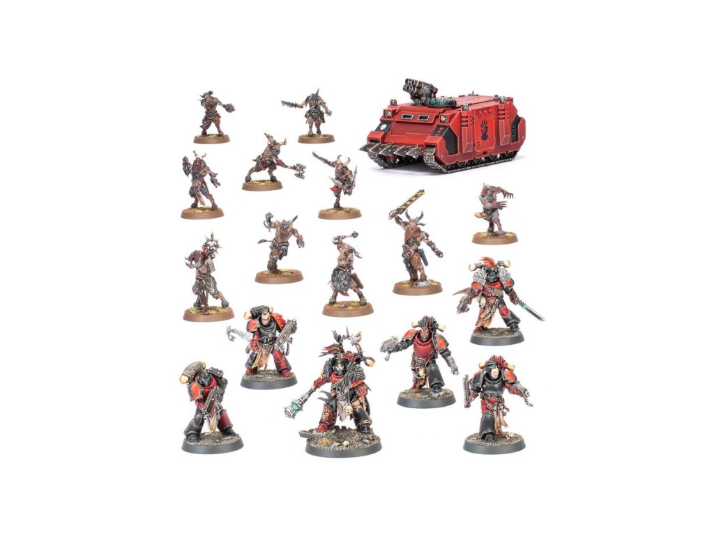 This packed box is the perfect way to start a new Red Corsairs-themed Chaos Space Marines collection – or expand an existing army – and save money compared to buying the kits individually. This hard-hitting force is led by a Red Corsairs Reave-captain, a brutal and cruel warlord equipped for close combat. The core of the force is composed of power-armoured Red Corsairs Raiders and a unit of savage Fellgor Ravagers. A Chaos Rhino supports the force, getting your units where they need to go in relative safety. These miniatures represent a complete Chaos Space Marines force for use in tight, tactical Combat Patrol games of Warhammer 40,000. The rules for this Combat Patrol are available as a free download on the Warhammer Community website. This boxed set is only available while stocks last.