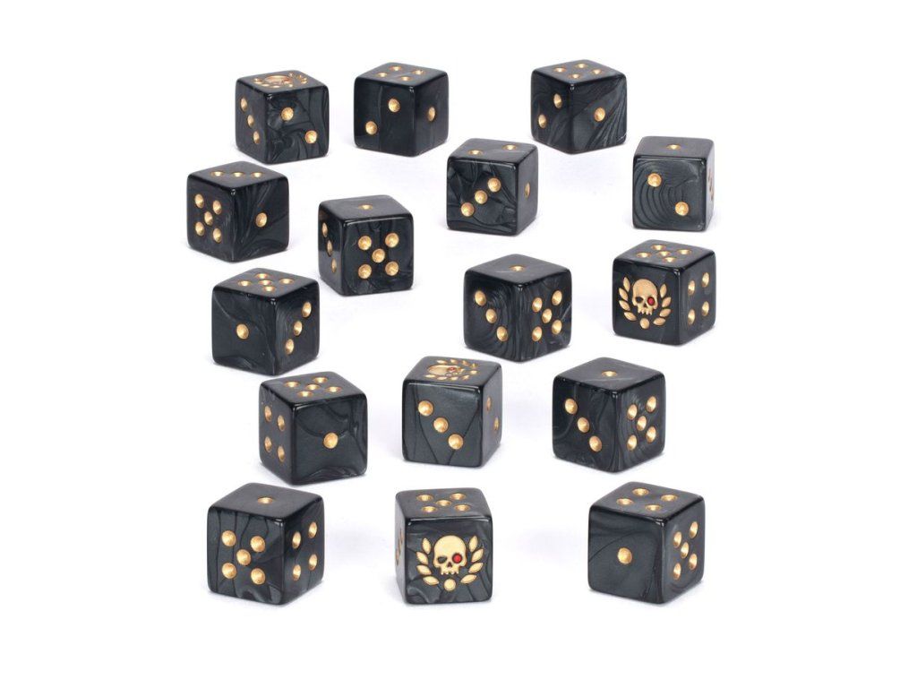 Toto je sada 16 šestistěnných kostek s hranatými hranami pro použití ve hrách Warhammer 40 000 s tématem komisaře Yarricka. Jsou odlity z perleťově černého akrylového plastu se zlatými a metalickými červenými inkoustovými značkami a měří 16 mm podél každé hrany. Čísla 1–5 jsou tradičně perforovaná a každá šestka je zdobena inspirativní ikonou komisaře Yarricka. Tyto kostky s tématem jsou k dispozici pouze do vyprodání zásob.