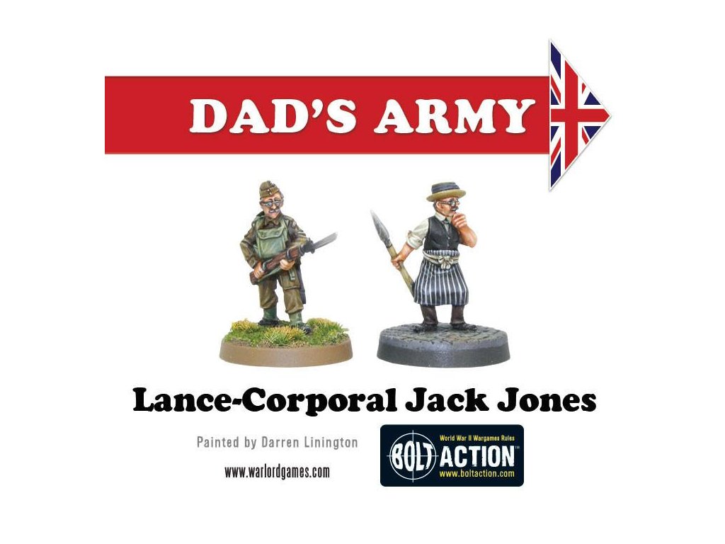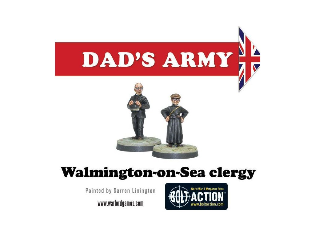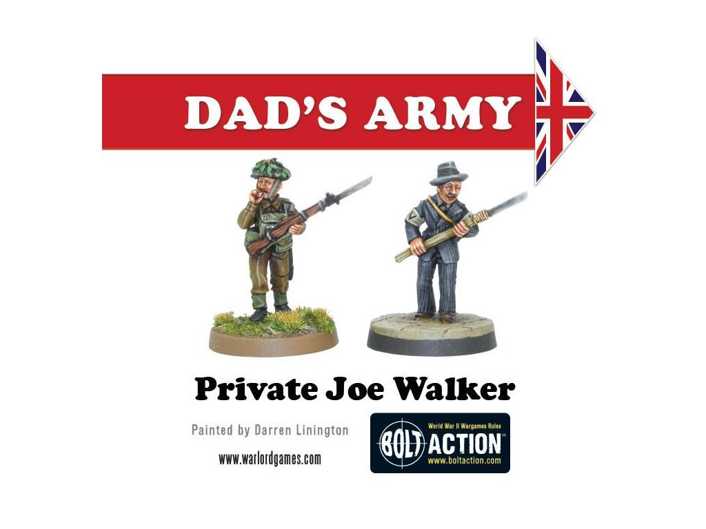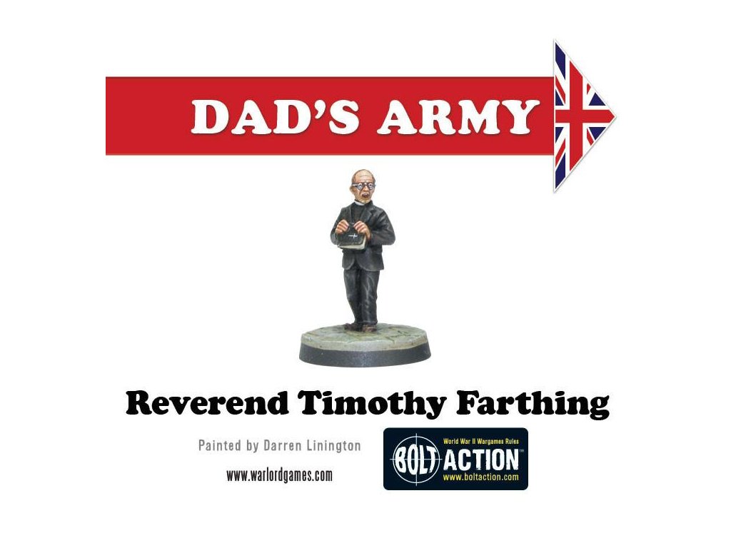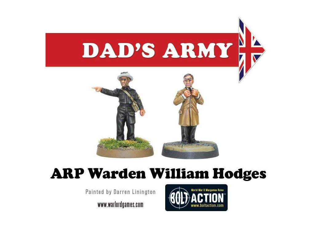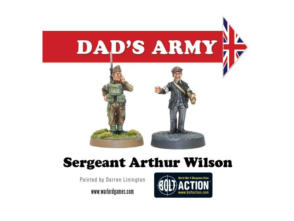 Krabice obsahuje 18 nádherně detailních miniatur od Paula Hickse - znázornění herců klasického televizního seriálu Tátova armáda v civilním a Domobranském oblečení! Součástí jsou kapitán Mainwaring, seržant Wilson, svobodník Jones, vojíni Pike, Walker, Frazer a Godfrey, dále strážce Hodges, kostelník a reverend Farthing.