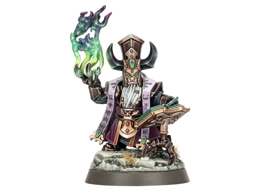 Daemonsmiths use the dark magics of Hashut in their pursuit of greater degrees of power, no matter the cost. These sorcerers are masters of infernal mechanisms and molten magics, presiding over batteries of war engines they have personally empowered with ruinous spark. Battle, to their mind, is merely another means to demonstrate their abilities – a fact that always bodes ill for their enemies.