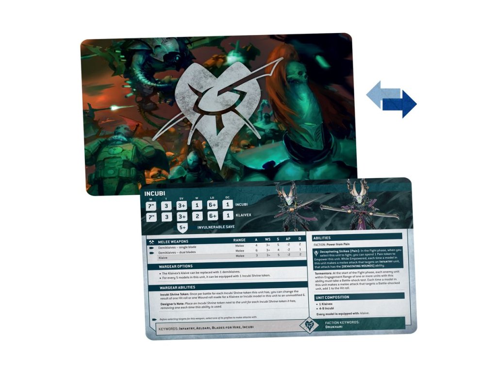 Abyste mohli tyto karty plně využít, budete potřebovat kopii Codex: Drukhari, která je k dispozici samostatně.