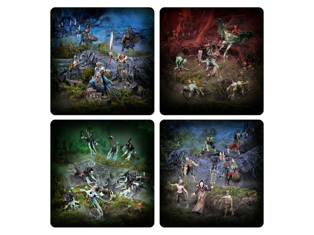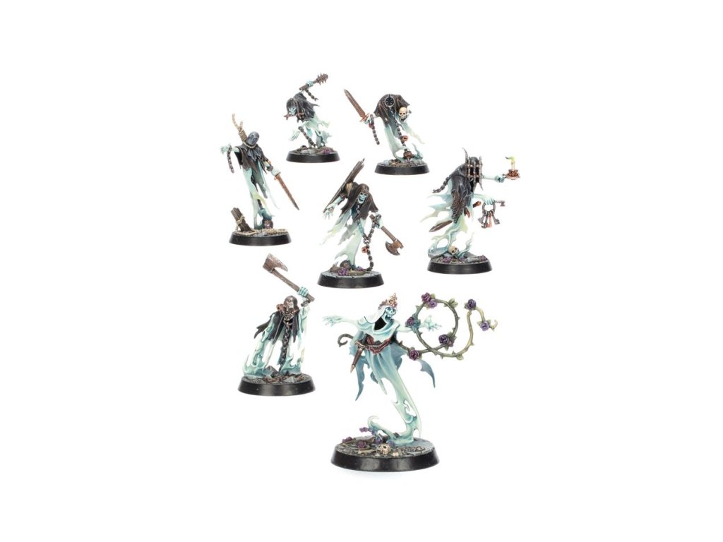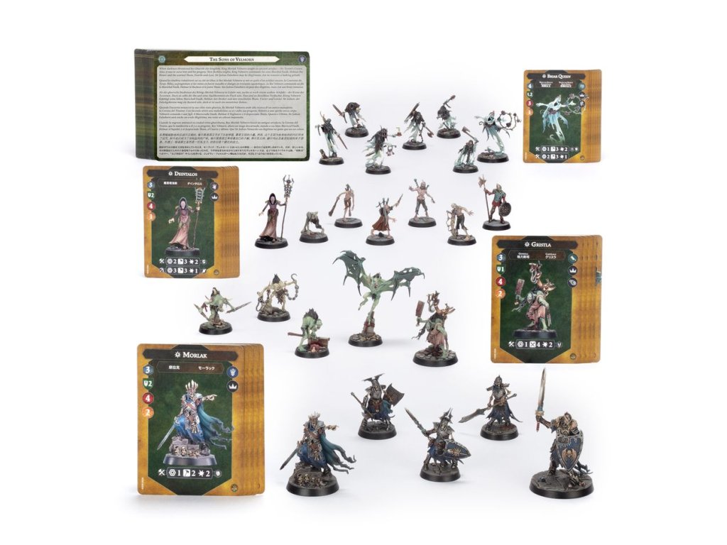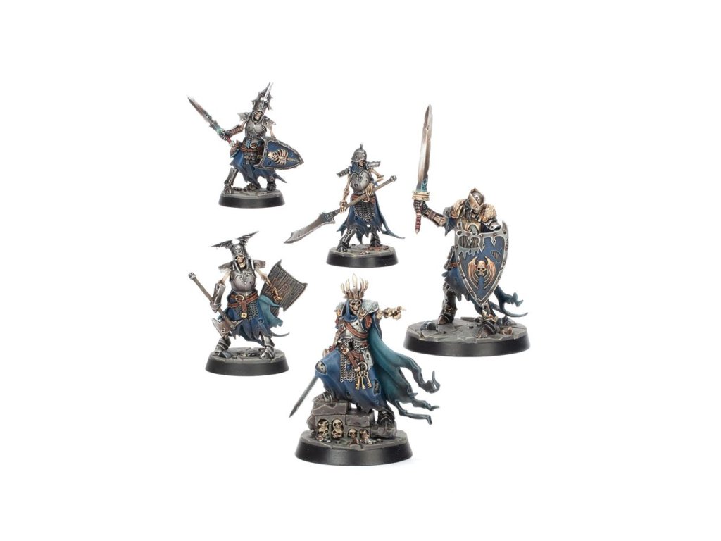 Tato sada obsahuje čtyři válečné bandy s tématem smrti pro Warhammer Underworlds. Všechny miniatury jsou nasazovací, odlité z barevného plastu a na rámech obsahují scénické podstavce, abyste mohli rychle začít hrát. Pro každou válečnou bandu najdete také karty válečných svitků a karty bojovníků. Synové Velmornu jsou všestranná flexibilní válečná banda a Skinnerkin je agresivní útočná válečná banda. Trny vřesovištní královny jsou odolná válečná banda typu Take and Hold a Vyhnaní mrtví jsou válečná banda typu Mastery, která odměňuje hráče za pečlivé řízení.