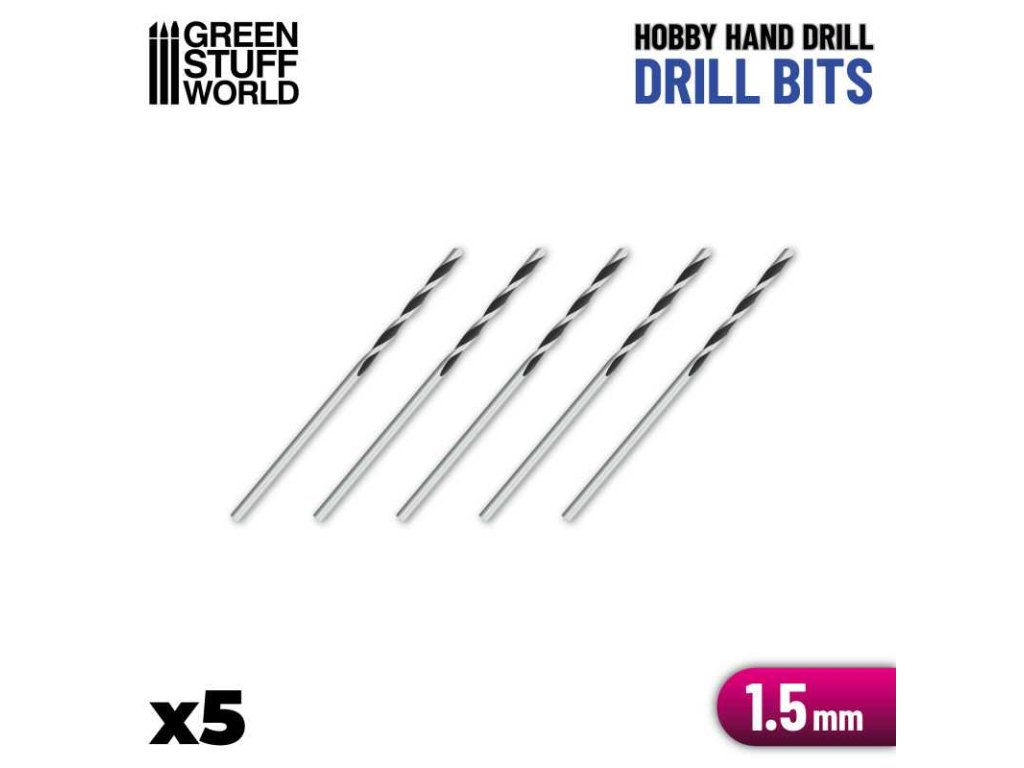 This is a 5 Bits Pack in 1,5 mm for drilling, positioning and starting holes in a variety of materials in your hobby projects such as miniature conversions, miniature assembling, scale modeling, model railroading, arts and craft, etc.
