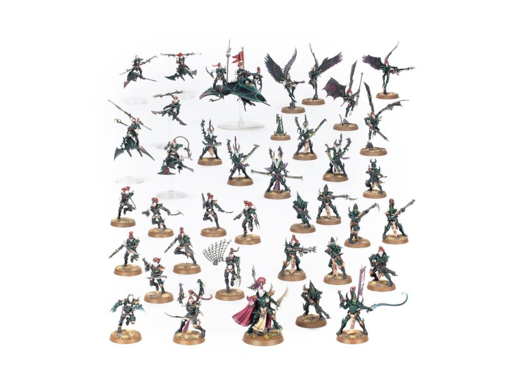 Tato nabitá sada je ideální pro založení nové kolekce Drukhari – nebo rozšíření stávající armády – kterou můžete vypustit do hry Warhammer 40,000. Tito Drukhari, vedeni krutým Archonem a jeho bodyguardy Incuby, jsou připraveni zničit své cíle v reálném vesmíru a vzít si, co potřebují k přežití. Síla je postavena kolem pevného jádra Kabalitských válečníků a Čarodějnic, což vám dává možnosti boje na dálku i zblízka. Na jejich podporu najdete smrtící Venoma, Pohromy a Helliony, kteří vám poskytnou obrovské množství vysoce mobilního pokrytí hrací plochy pro dobývání a držení cílů, rozptylování pozornosti soupeře nebo obtěžování a ničení zatoulaných jednotek.