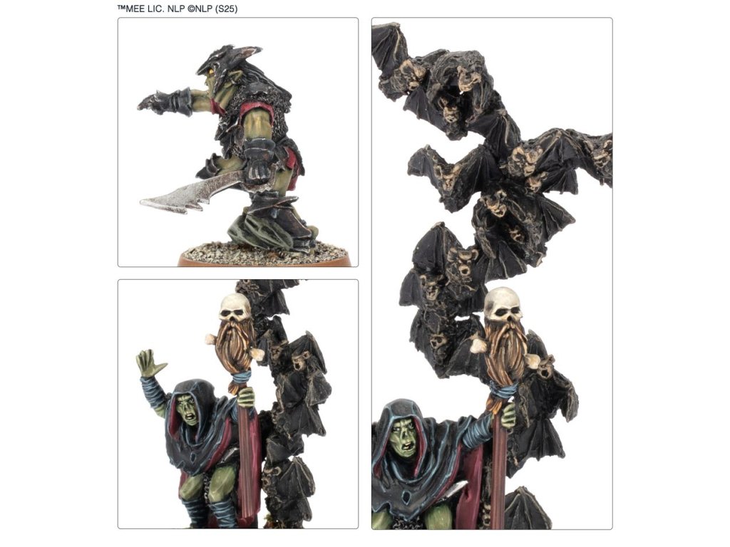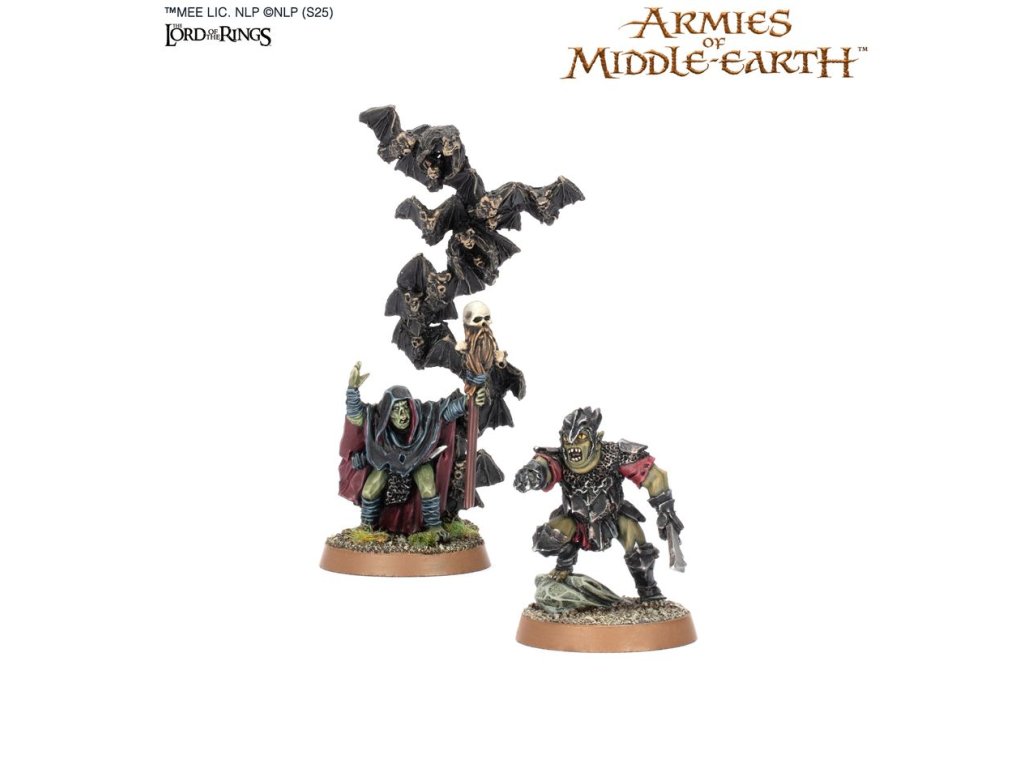 This multipart metal kit builds Durbûrz and Drûzhag, a pair of ruthless Goblins for your Moria armies in the Middle-earth Strategy Battle Game. One a powerful warrior, the other a wizard who can control beasts, they make a potent pair of leaders for your Warbands.