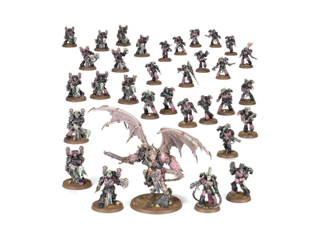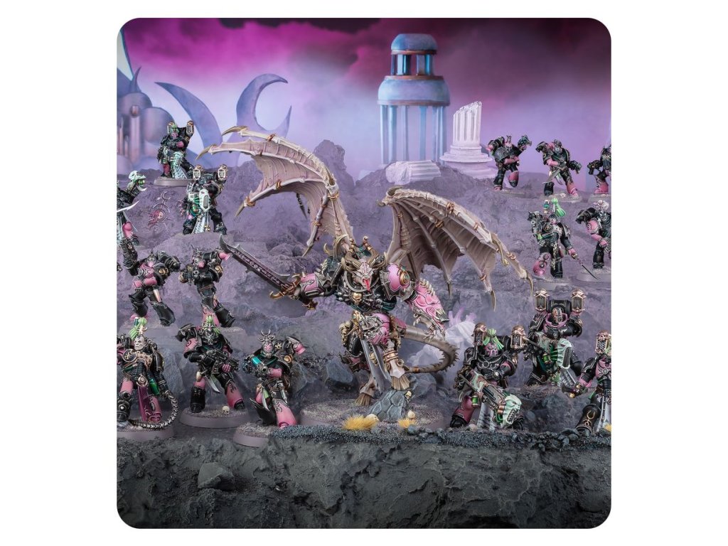 This packed boxed set is ideal for starting a new Emperor’s Children collection – or expanding an existing army – to unleash in games of Warhammer 40,000, and save money compared to buying the kits separately. Led by a mighty winged Daemon Prince of Slaanesh, the force is composed of power-armoured warriors – you'll find ten Infractors and ten Tormentors for taking and holding objectives, and pushing forward into melee. Backing them up are two units of Noise Marines, ready to shred the sanity (and armour) of any who dare to oppose you.