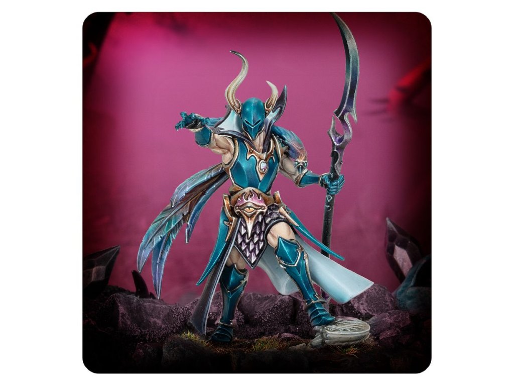 Fatemasters are the military masterminds of the Arcanite cults – charismatic firebrands who weave plots and illusions to ensure the annihilation of their enemies. Their cursed glaive carves through flesh and metal with unnatural ease, while a loyal Twistwing familiar provides them with an unimpeded view of the battlefield.