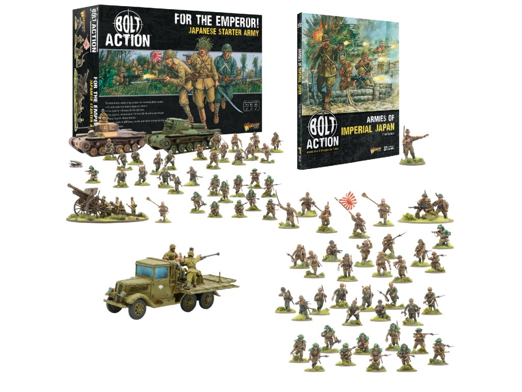 Chcete skutečně projevit svou oddanost japonskému císaři? Tento skvělý balíček vám poskytne kopii knihy Armády císařského Japonska a speciální figurku z knihy, plus startovací armádu Pro císaře!, která obsahuje 42 plastových pěšáků s řadou zbraní včetně lehkých kulometů, multiminometů, lehkých minometů a odstřelovacích pušek, dále 105mm houfnici a dvě obrněná vozidla - tank Chi-Ha a samohybný kanón Ho-Ro. K tomu jsme přidali další krabici s 30 plastovými pěšáky, takže celkem máte 72 kusů, a nosič protiletadlových kanónů Isuzu Type 98.