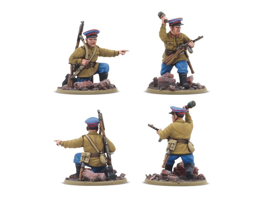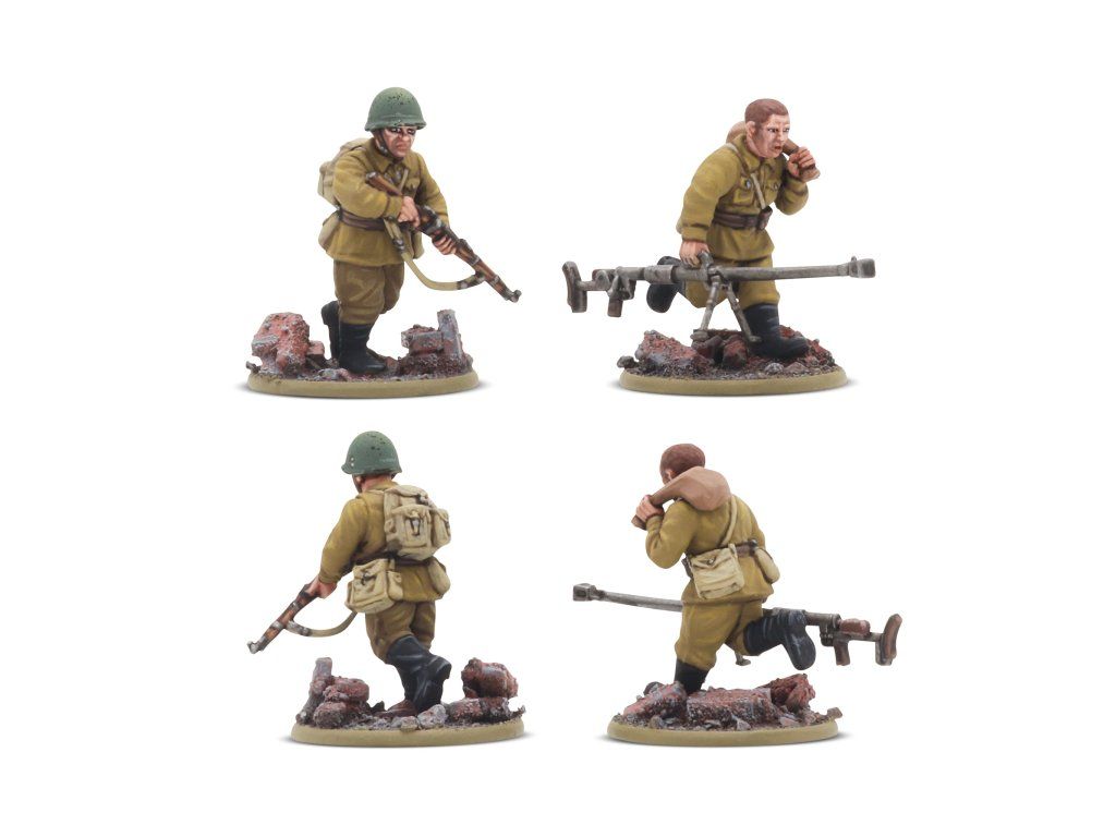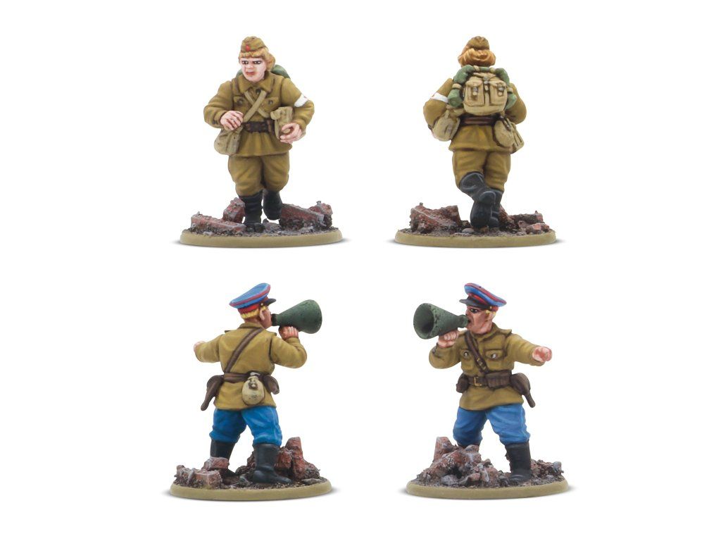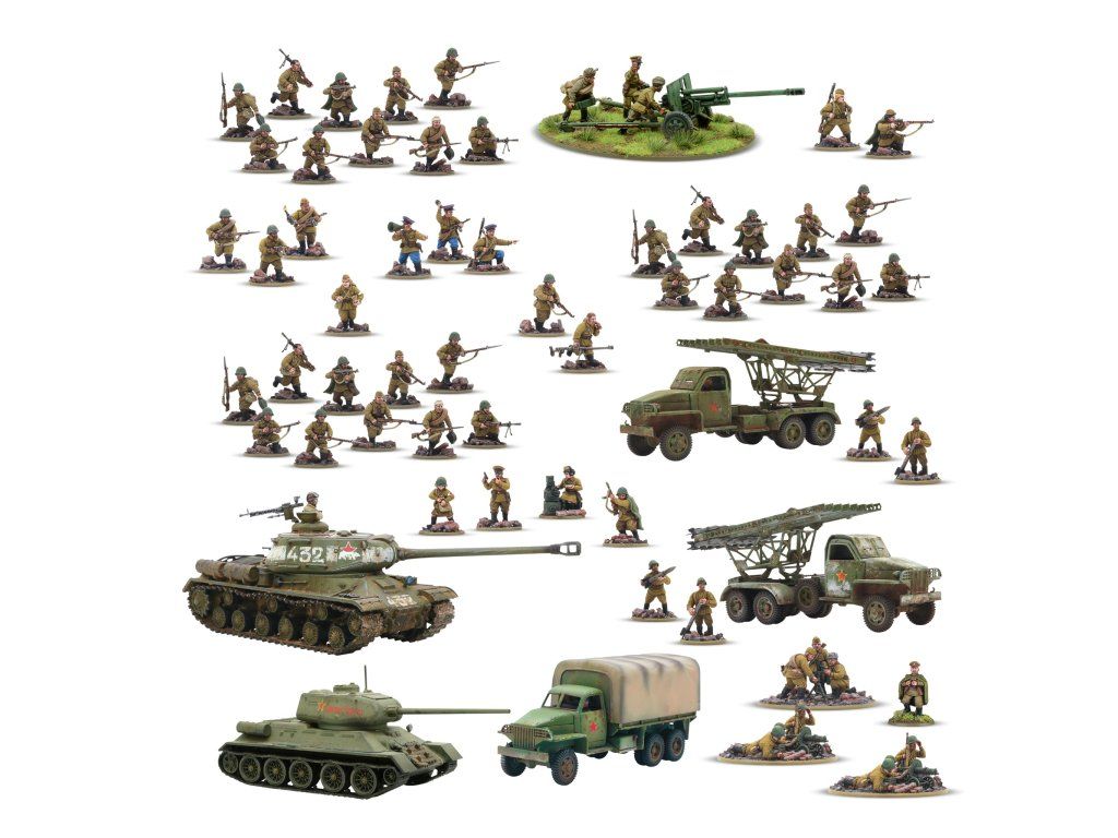 Tento skvělý balíček obsahuje startovací armádu Forward to Berlin!, která obsahuje 42 plastových pěšáků s řadou zbraní, dále pryskyřičný a kovový střední minomet Warlord a dva střední kulomety, divizní kanón Zis-3, tank T-34/85 a odpalovací zařízení Kaťuša. K tomu jsme přidali další Kaťušu, těžký tank IS-2, který obsahuje dalších 6 pěšáků, 4 pryskyřičné sovětské pěchotní velitelské jednotky Warlord a nákladní vůz Studebaker US6.