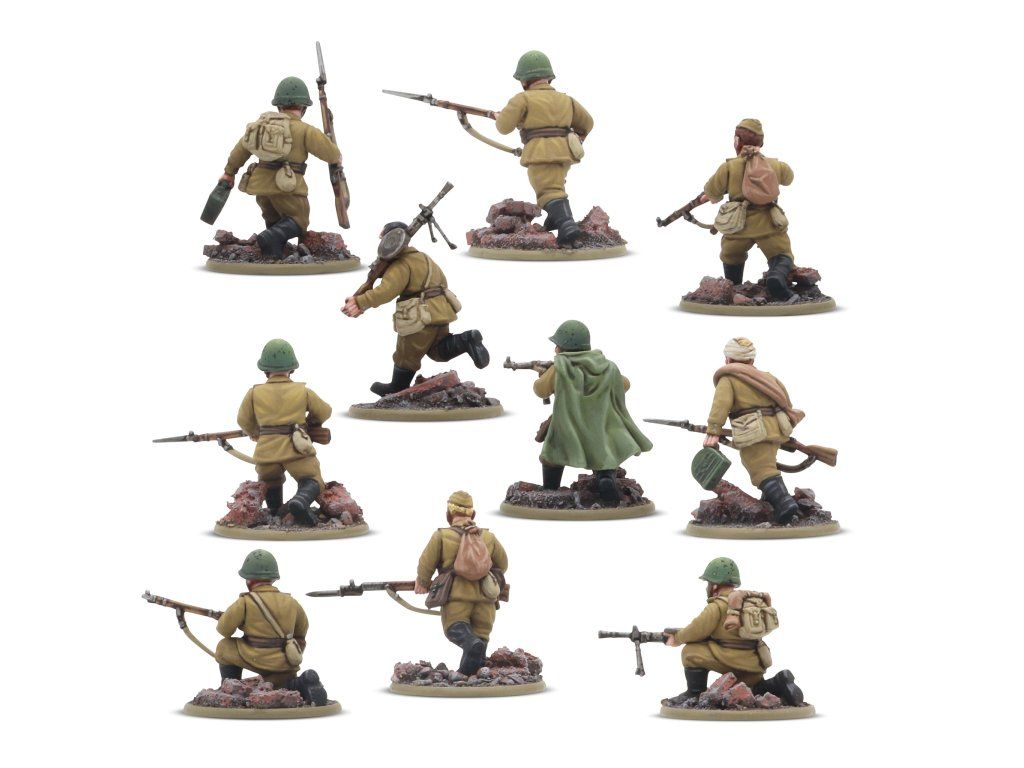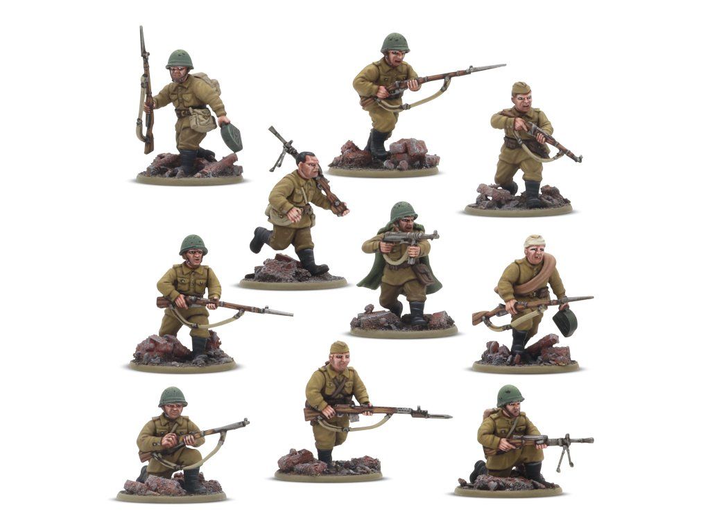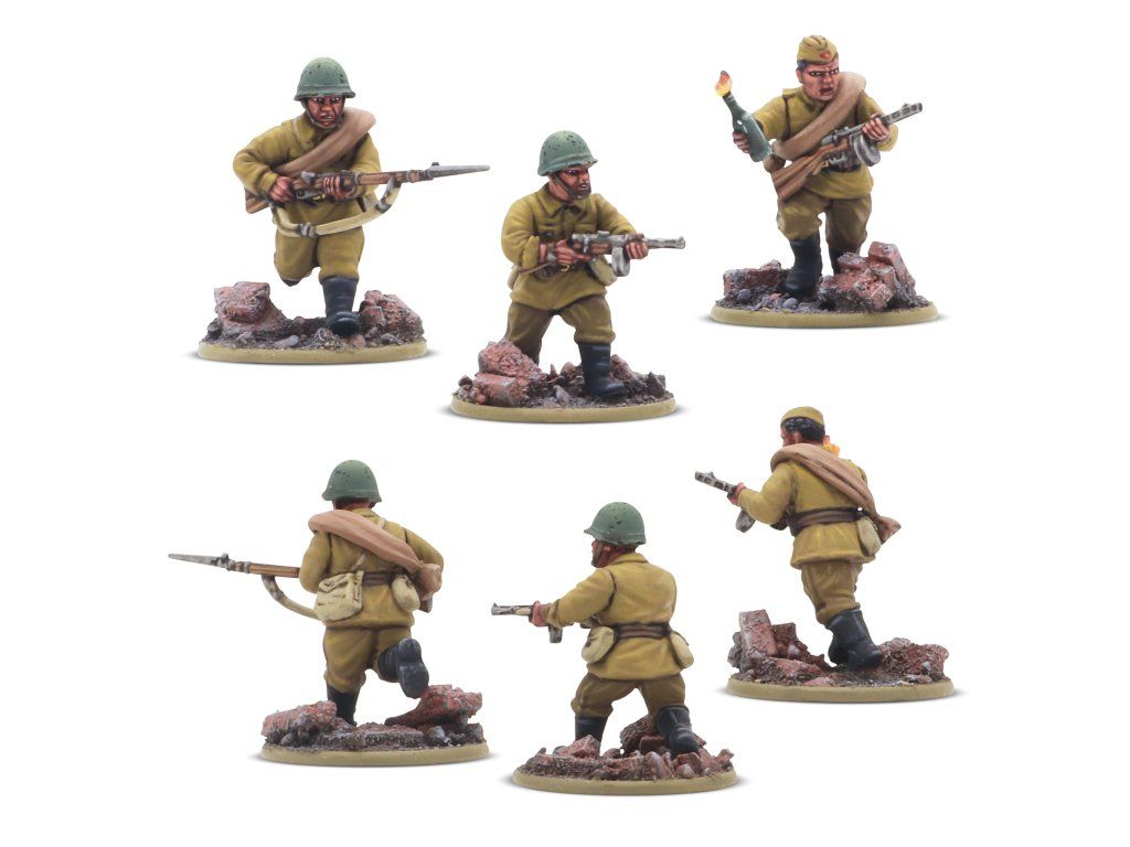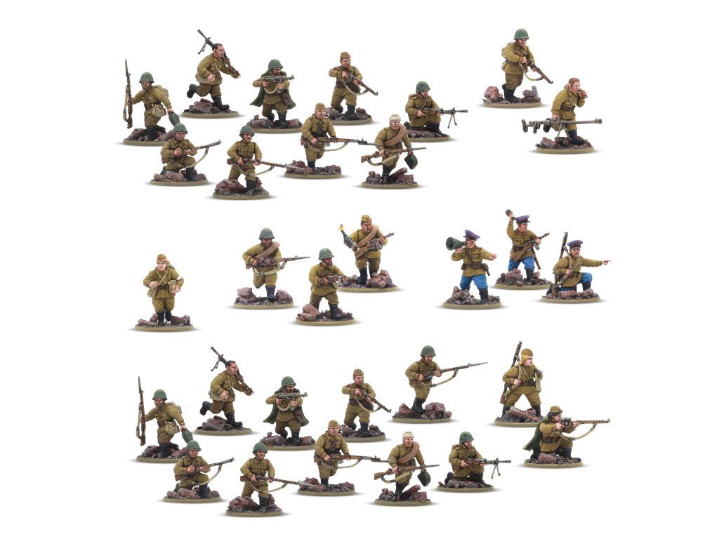 Tento skvělý balíček obsahuje startovací armádu Forward to Berlin!, která obsahuje 42 plastových pěšáků s řadou zbraní, dále pryskyřičný a kovový střední minomet Warlord a dva střední kulomety, divizní kanón Zis-3, tank T-34/85 a odpalovací zařízení Kaťuša. K tomu jsme přidali další Kaťušu, těžký tank IS-2, který obsahuje dalších 6 pěšáků, 4 pryskyřičné sovětské pěchotní velitelské jednotky Warlord a nákladní vůz Studebaker US6.