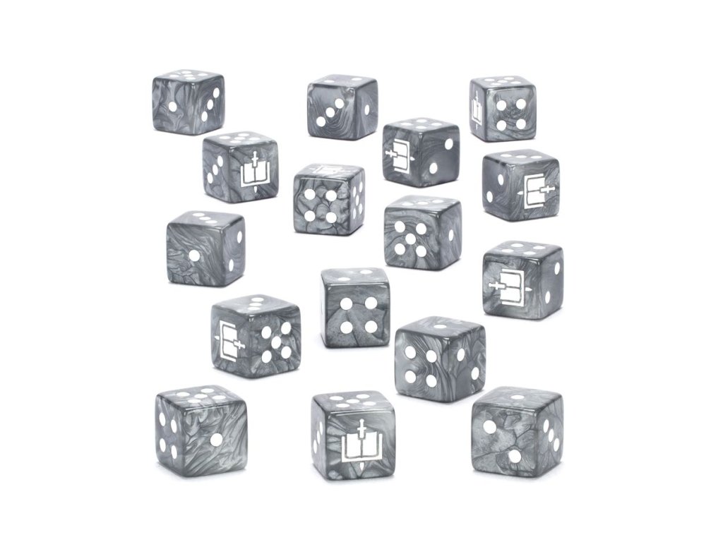 Toto je sada 16 šestistěnných kostek s hranatými hranami pro použití ve hrách Warhammer 40,000 s tématem Šedých rytířů. Jsou odlity z perleťově šedého akrylového plastu s bílými inkoustovými značkami a měří 16 mm podél každé hrany. Čísla 1-5 jsou tradičně perforovaná a každá šestka je zdobena ikonou Šedých rytířů, která vyhání démony.