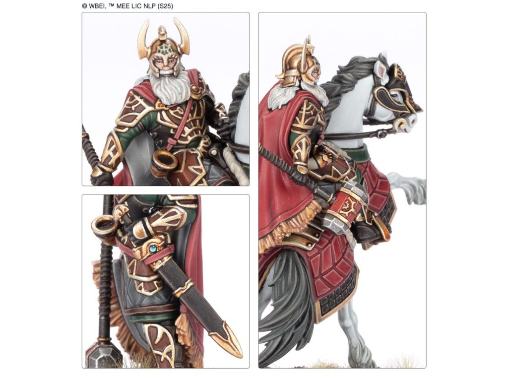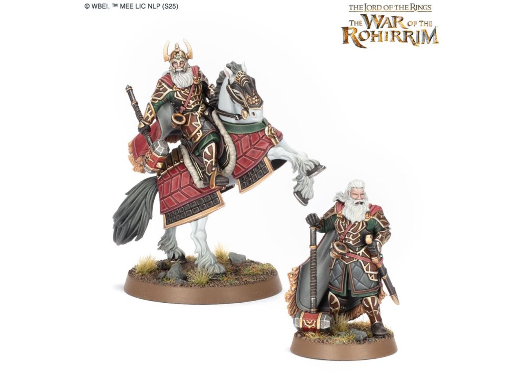 This multipart plastic kit builds Helm Hammerhand, both on foot and mounted, for your Army of Edoras armies in the Middle-earth Strategy Battle Game. The ultimate leader for your mighty musterings of the Rohirrim, Helm can lead infantry or cavalry armed with his massive two-handed hammer. His unmounted miniature can be assembled with or without his signature helmet.