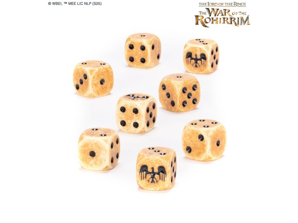 Toto je sada 8 kulatých šestistěnných kostek pro použití ve strategické bitevní hře Středozemě, která se věnuje Horským kmenovým mužům. Jsou odlity z opotřebovaného plastu barvy kosti s černými inkoustovými znaky a měří 16 mm podél každé hrany. Čísla 1–5 jsou tradičně perforovaná a každá šestka je zdobena stylizovanou ikonou ptáka Horských kmenů.