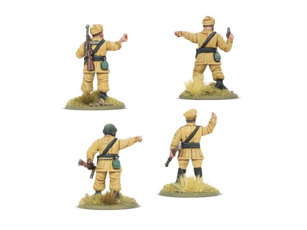 Důstojníci parašutistů, velící z fronty, prošli stejným výcvikem jako jejich muži a poskytovali jim tolik potřebné vedení v boji. Tato sada obsahuje velitele čet pro střelecké, průzkumné, těžké zbraně a dělostřelecké čety – ale můžete je použít pro jakoukoli část vašich parašutistů, která potřebuje vedení!