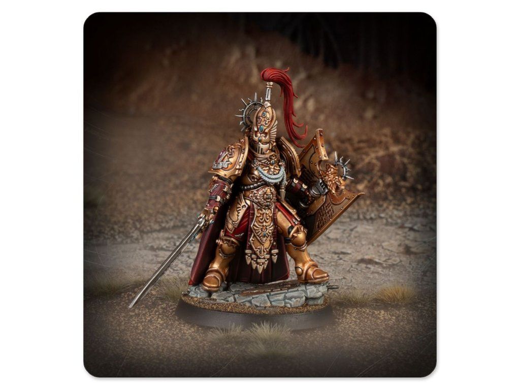 This miniature can be used to represent a Tribune – a mighty leader held in immense esteem by their fellow Custodians.
