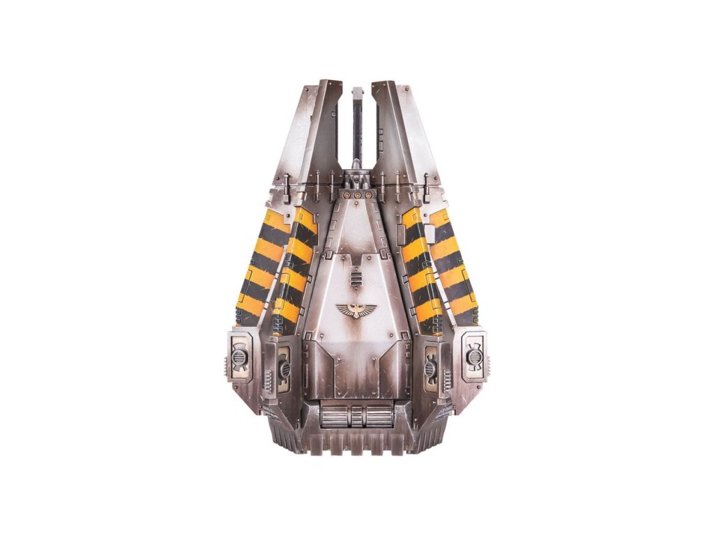 Drop pods are self-contained, recoverable orbital descent capsules, each designed to deliver a squad of Space Marines. They are used for surprise attacks and combat drops into the midst of active war zones, with Legiones Astartes warships showering them down like ordnance from the edge of space towards their target. Drop pods are armoured and reinforced to withstand the rigours of re-entry, but their true defence is speed.