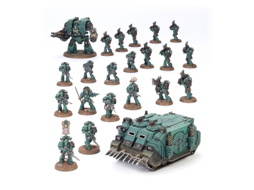 Pokud chcete dobýt galaxii ve jménu Císaře (nebo ji celou zničit ve jménu Hora), tato krabice je perfektním způsobem, jak založit novou kolekci Legiones Astartes – nebo rozšířit stávající armádu – a ušetřit peníze ve srovnání s nákupem sad jednotlivě. K dispozici jsou dvě jednotky Legionářů vesmírných mariňáků oděných v pokročilém silovém brnění MkVI – taktická jednotka s boltery a těžká podpůrná jednotka vyzbrojená buď raketomety, nebo těžkými boltery. Kterákoli z těchto jednotek se může vydat na palubu Deimosova modelu Rhino pro rychlé nasazení. Sílu doplňuje mohutný Leviathan Dreadnought, vybavený ničivými zbraněmi s dlouhým dostřelem.