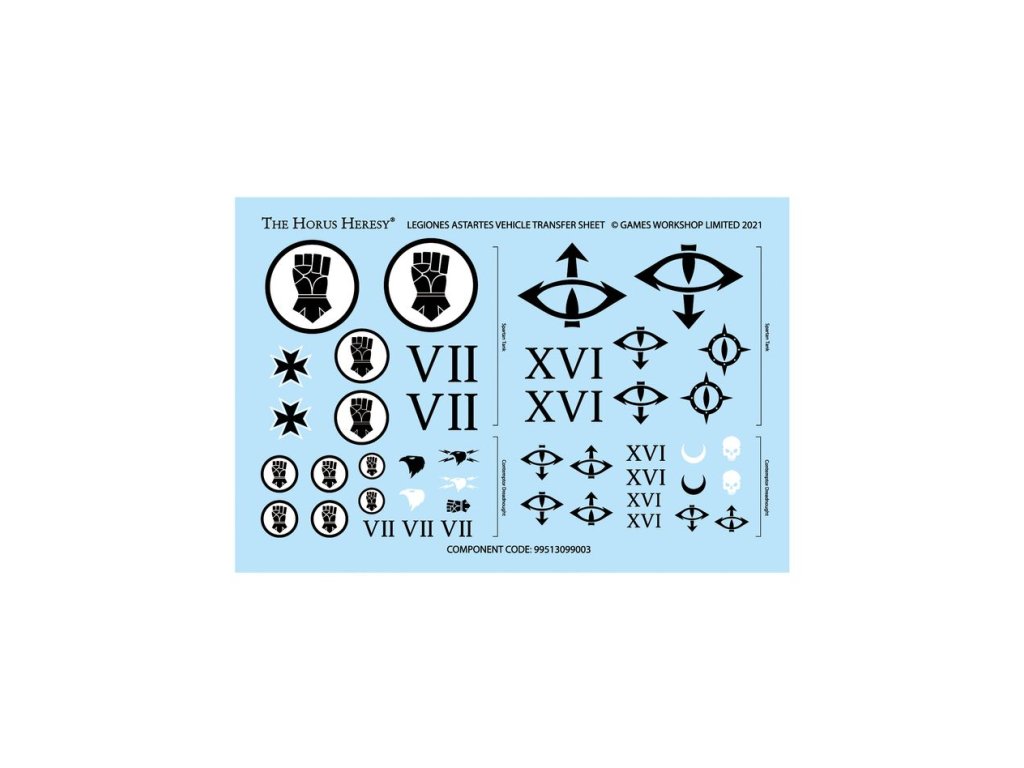 Tato sada obsahuje 656 plastových komponentů, 1x kulatou základnu Citadel 80 mm, 20x kulatých podstavců Citadel 32 mm, 1x překládací list pěchoty Legiones Astartes obsahující 293 vysoce kvalitních překládacích desek s vodními tobogány a 2x překládací listy vozidel Legiones Astartes, každý obsahující 44 vysoce kvalitních překládacích desek s vodními tobogány pro přizpůsobení vašich miniatur.