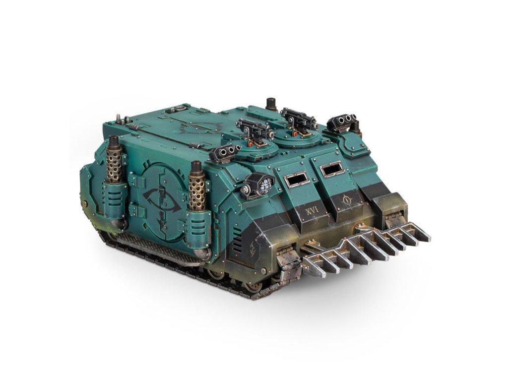 The Deimos pattern Rhino can take a pintle-mounted havoc launcher, heavy bolter, heavy flamer, multi-melta or combi-bolter, combi-flamer, combi-melta, combi-plasma, or combi-volkite, as well as searchlights, a dozer blade, and a hunter-killer missile.