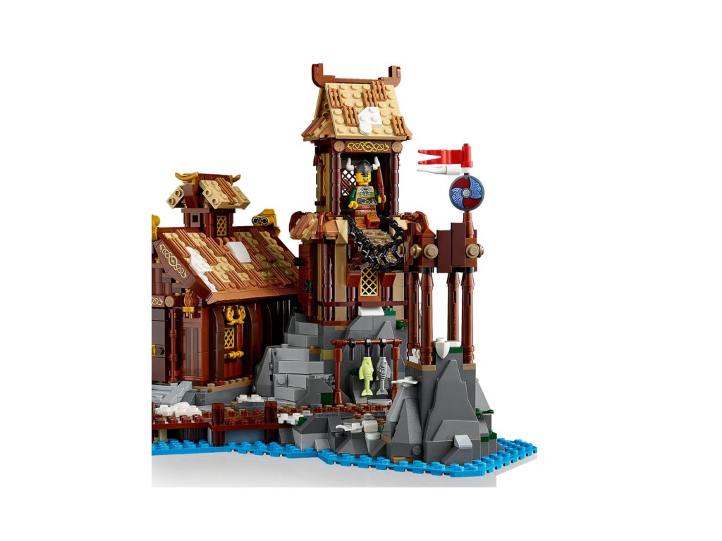 Objevte skvělé prvky, jako je kovářčina kovárna s funkcí dmýchání ohně, štíty s motivem Odinových 2 krkavců a 2 vlků, náčelníkův trůn, most ke strážní věži a jeskyně pro těžbu minerálů. Nenechte si ujít řadu odkazů na klasické stavebnice z řady LEGO Vikings. Návod, který vás provede každým krokem tohoto odpočinkového kreativního zážitku, najdete v krabici nebo aplikaci LEGO Builder.