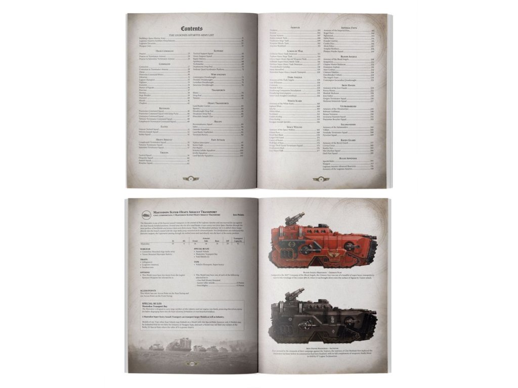 – Rules and unit profiles: A guide to army building, plus rules for units, weapons, and Wargear available to the Loyalist Legiones Astartes in Warhammer: The Horus Heresy.