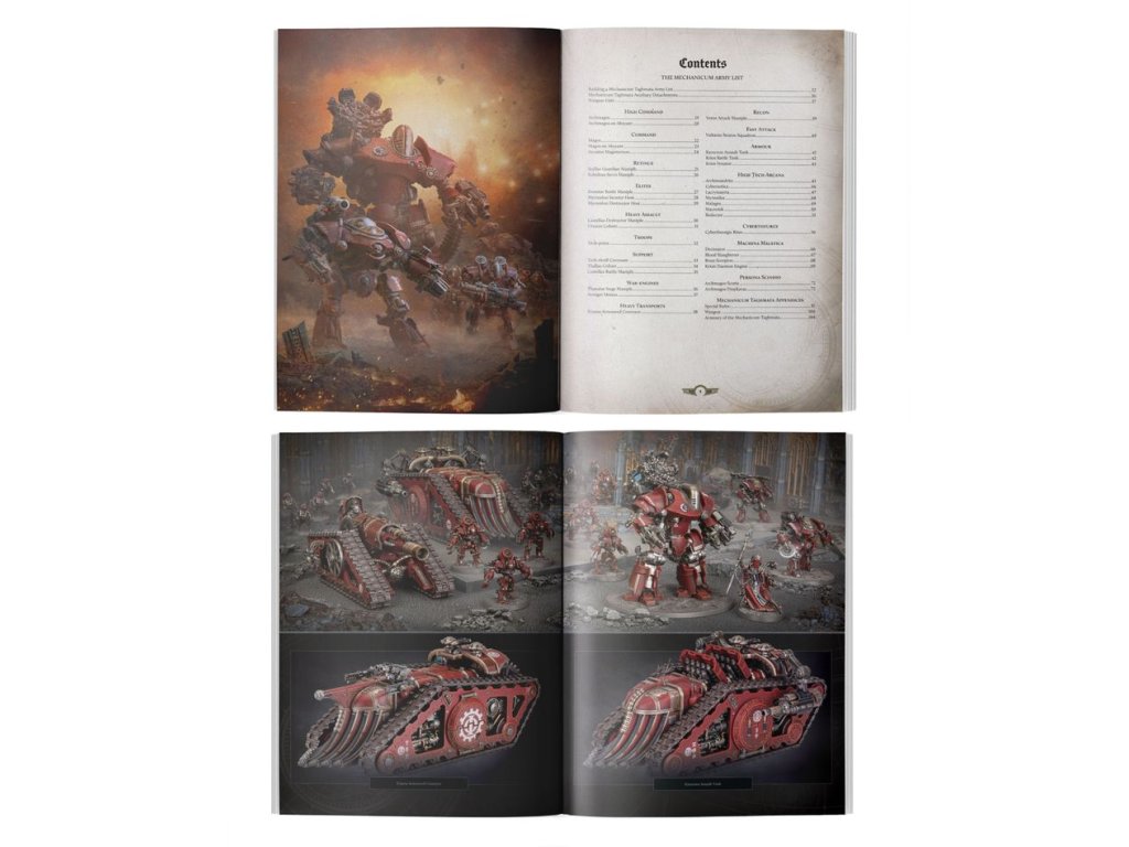 – Visual showcase: Colour schemes for infantry and vehicles, and a gallery of stunning miniatures photography for the Mechanicum.
