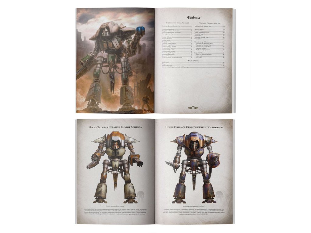 – Rules and unit profiles: A guide to army building, plus rules for units, weapons, and Wargear available for knights and titans in Warhammer: The Horus Heresy.