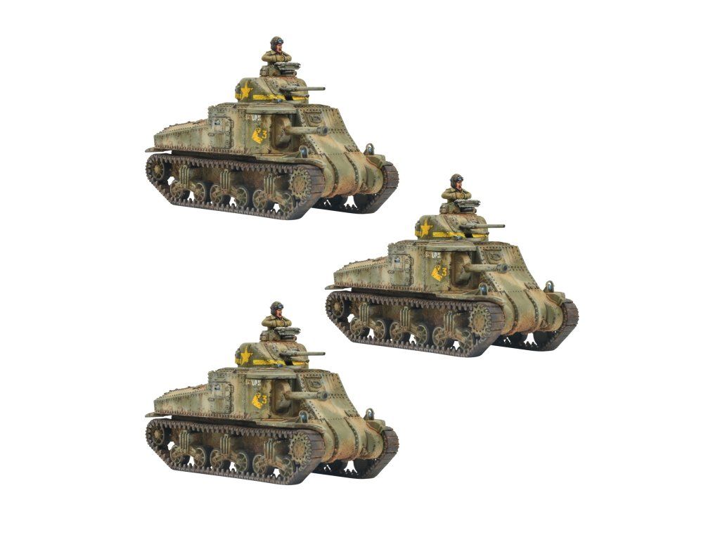 Tato stavebnice vám umožňuje postavit si M3 (Britům v této konfiguraci známý jako „Lee“), výkonný střední tank, který mohou nasadit americké, britské i sovětské síly. Toto vozidlo si můžete postavit s dřívějším krátkohlavňovým nebo později dlouhohlavňovým hlavním kanónem – ve hrách Bolt Action považujeme M3 za střední tank s hodnotou poškození 9+, vyzbrojený středním protitankovým kanónem v korbě a lehkým protitankovým kanónem ve věži a také středním kulometem!