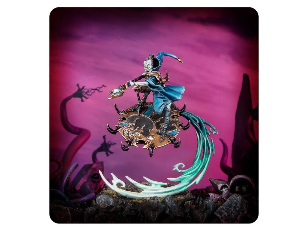 Magisters are powerful sorcerers in service to the Change God. Filled with eldritch energies as they ride their Disc of Tzeentch, they unleash a magical onslaught to annihilate the foe, channelling the surging energies of change to redouble the attacks of their warriors.