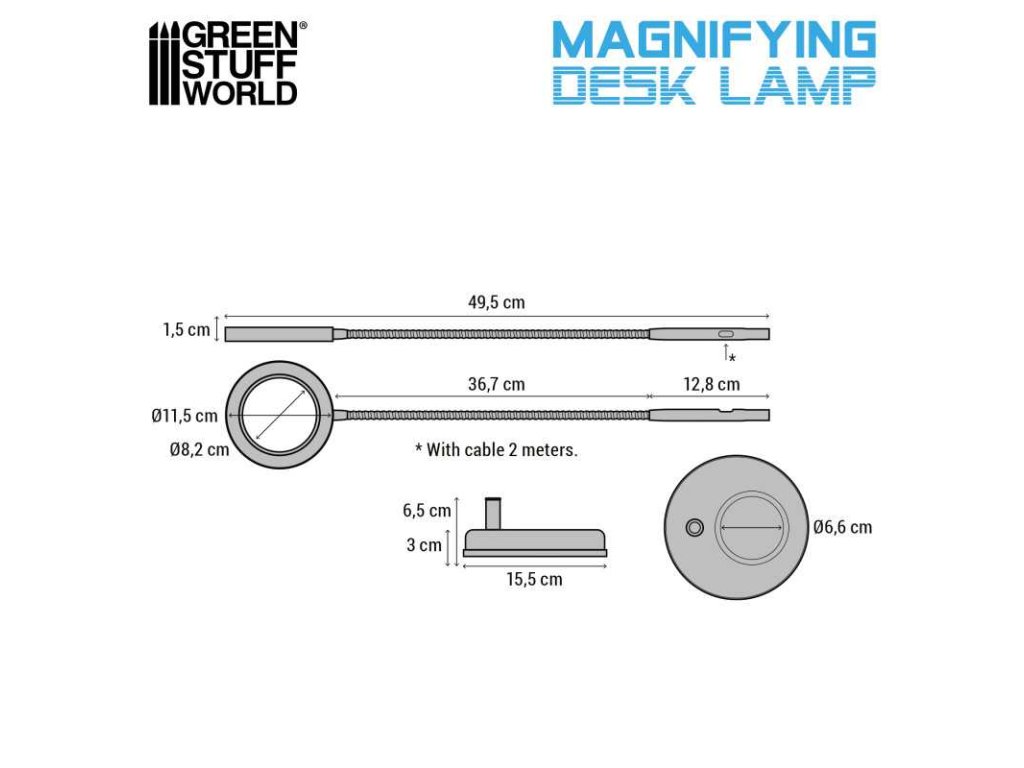 Lupa se světlem je napájena přes USB (vstup 5 V/1–2 A) a lze ji připojit pomocí adaptéru (kompatibilní se 100–240 V 50/60 Hz). Její kompaktní základna o průměru 6,1 palce zabírá na pracovní ploše jen velmi málo místa, takže je ideální pro malé stoly nebo hobby stanice. Konstrukci lze navíc otáčet na obě strany (doleva/doprava), což nabízí ještě větší všestrannost. Je k dispozici v elegantní matné černé barvě a je ideální volbou pro profesionální i domácí prostředí.