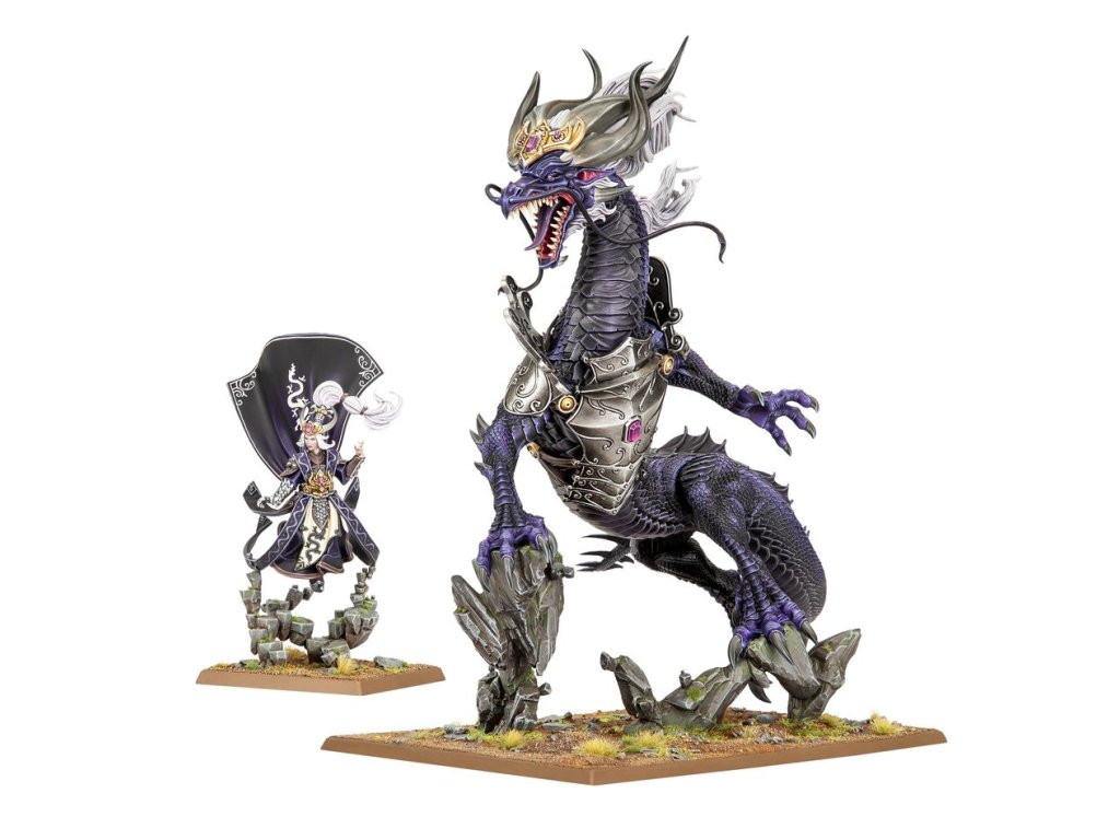 This multipart plastic kit builds Miao Ying in both her dragon and human forms for your Armies of Grand Cathay in games of Warhammer: The Old World. In her human form, she appears to be floating above the battlefield, revelling in her power as she commands her armies. Her dragon form is majestic, flying low across the battlefield, ready to wield her fangs and wicked claws to deadly effect. In either form, she is a formidable general and powerful wizard. Whether you are a gamer, a painter, or a collector, the Storm Dragon is a stunning centrepiece miniature.